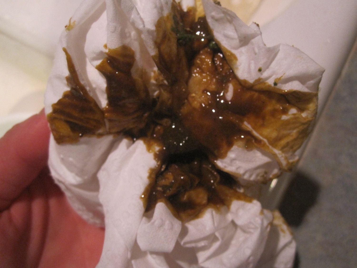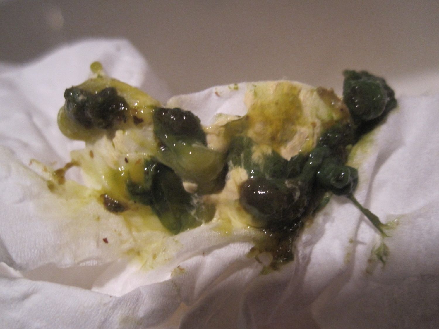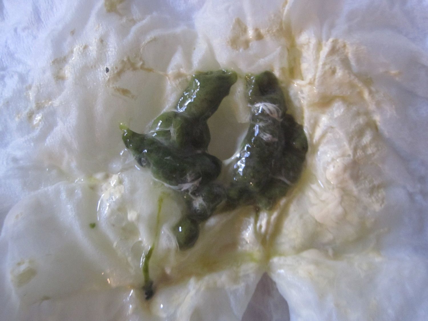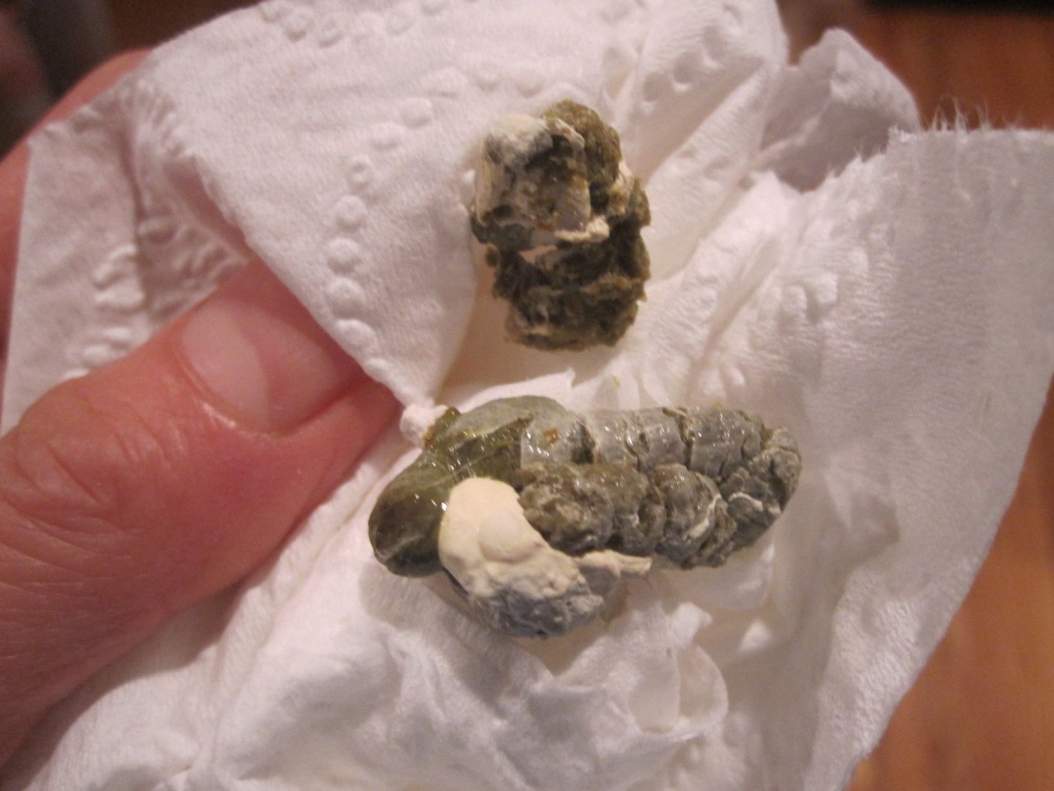 She pooped them out within 30 minutes after taking a bath. What are two brown/greenish poops?
