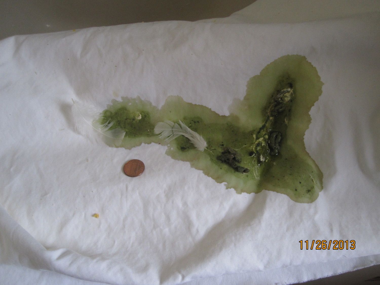 Just a guess, butt hose skinny poops look like maybe she has a partial obstruction, which could be an egg, tumor or fluid, but many of the poops look normal sized, so maybe it's nothing.