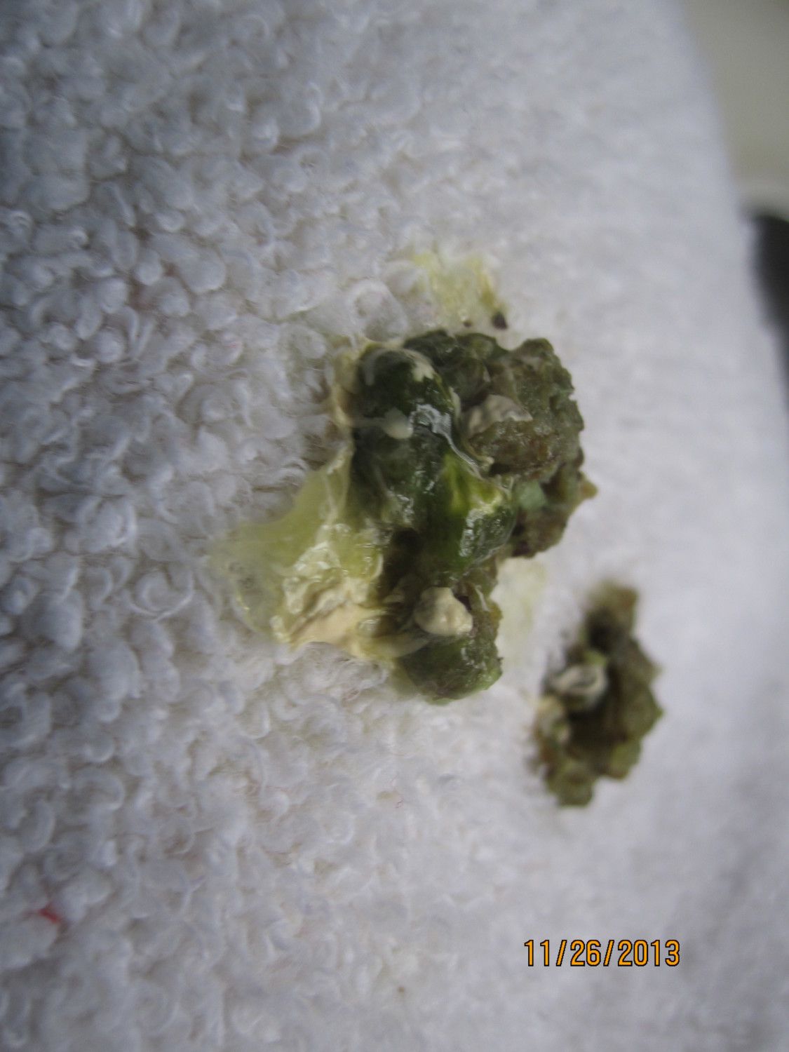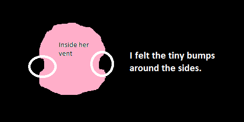 And, when I inserted my finger (wearing a glove)in her vent, I didn't feel the tiny bumps around the spots anymore. What? I don't know.
