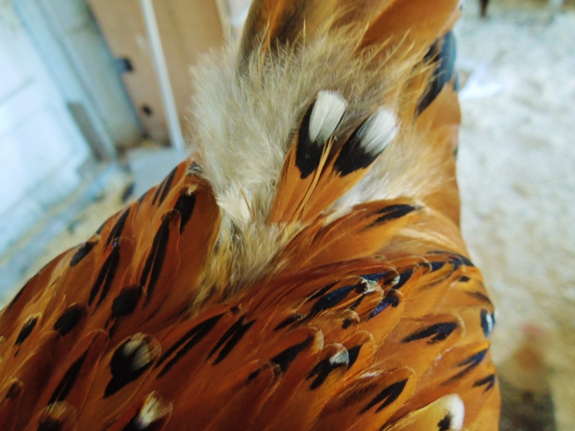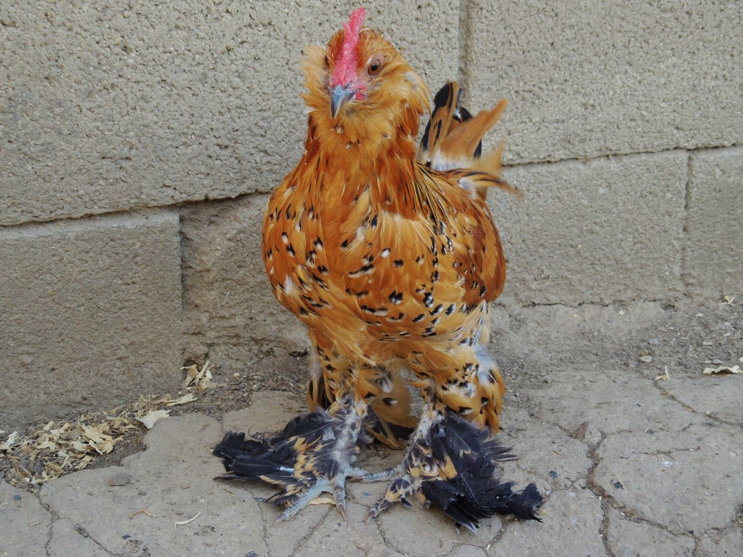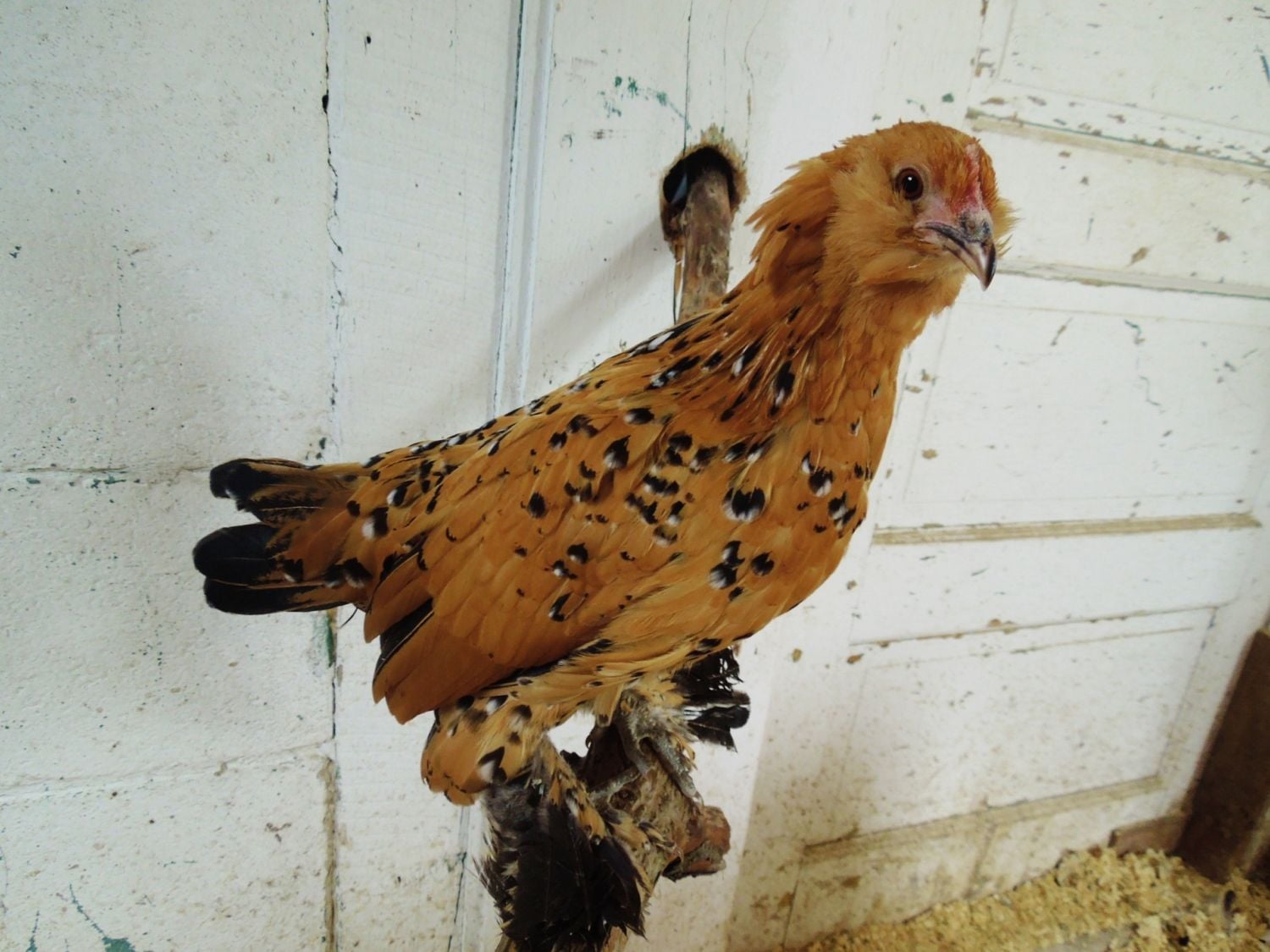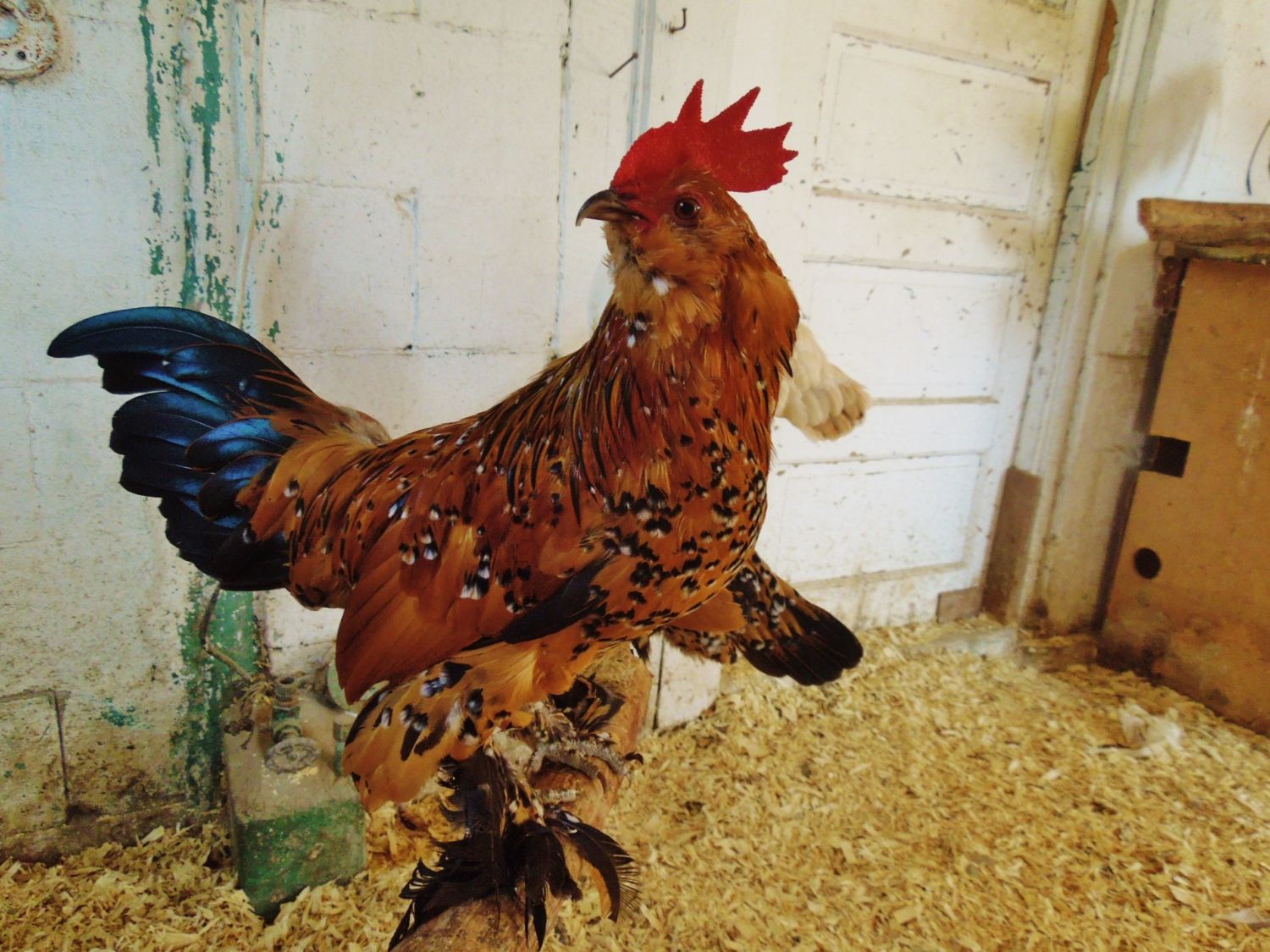 Our most dominant cockerel jumps on Barracuda like one of the pullets, and the other Mille Fleur defends him fiercely. Also, he's got a very small, stubby tail like the MF d'Uccle pullet. What's going on? I wish I had a better picture of him, but this is what I've got for now.