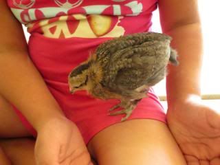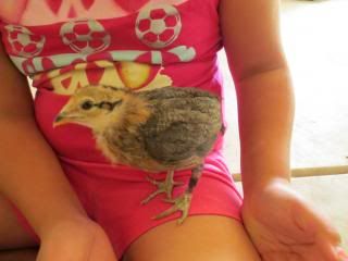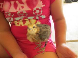 For fun, here is our EE pullet, Gertrude, and my daughter, Isabelle.