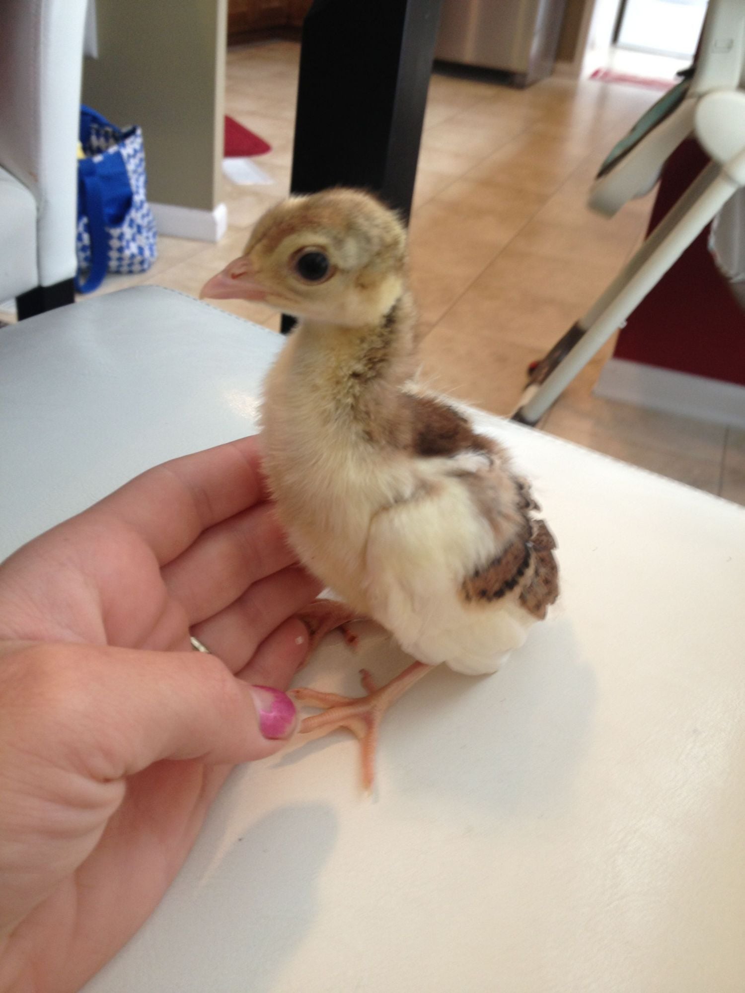 I had a friend pick a peafowl egg up for me at a huge sale in Ohio (we live in Eastern Kentucky) For $10! The lady told him it was a India blue and had marked it "blue" I put it in the incubator and low and behold to my shock it actually hatched!! My favorite peafowl is hands down a pied! This is my 1st peachick/peafowl so I really don't know much about them! Any tips/information/help/suggestions would be greatly appreciated! Someone told me to absolutely not feed it medicated chick starter just game feed?!? I've been feeding mine medicated chick starter all week since its hatched but I just switched to half medicated chick starter and half flock raiser and I boiled and smashed up a egg for it today! Anyway I had never seen a peachick besides mine but today I decided to google some and noticed mine is half white and India blues are almost all brown and from what I can tell he looks pied to me what do u professional peafowl people think about it?? What do I got?? Any name suggestions? When can I tell the sex on it? Do u need another picture of its wings? Can u sex pied early?