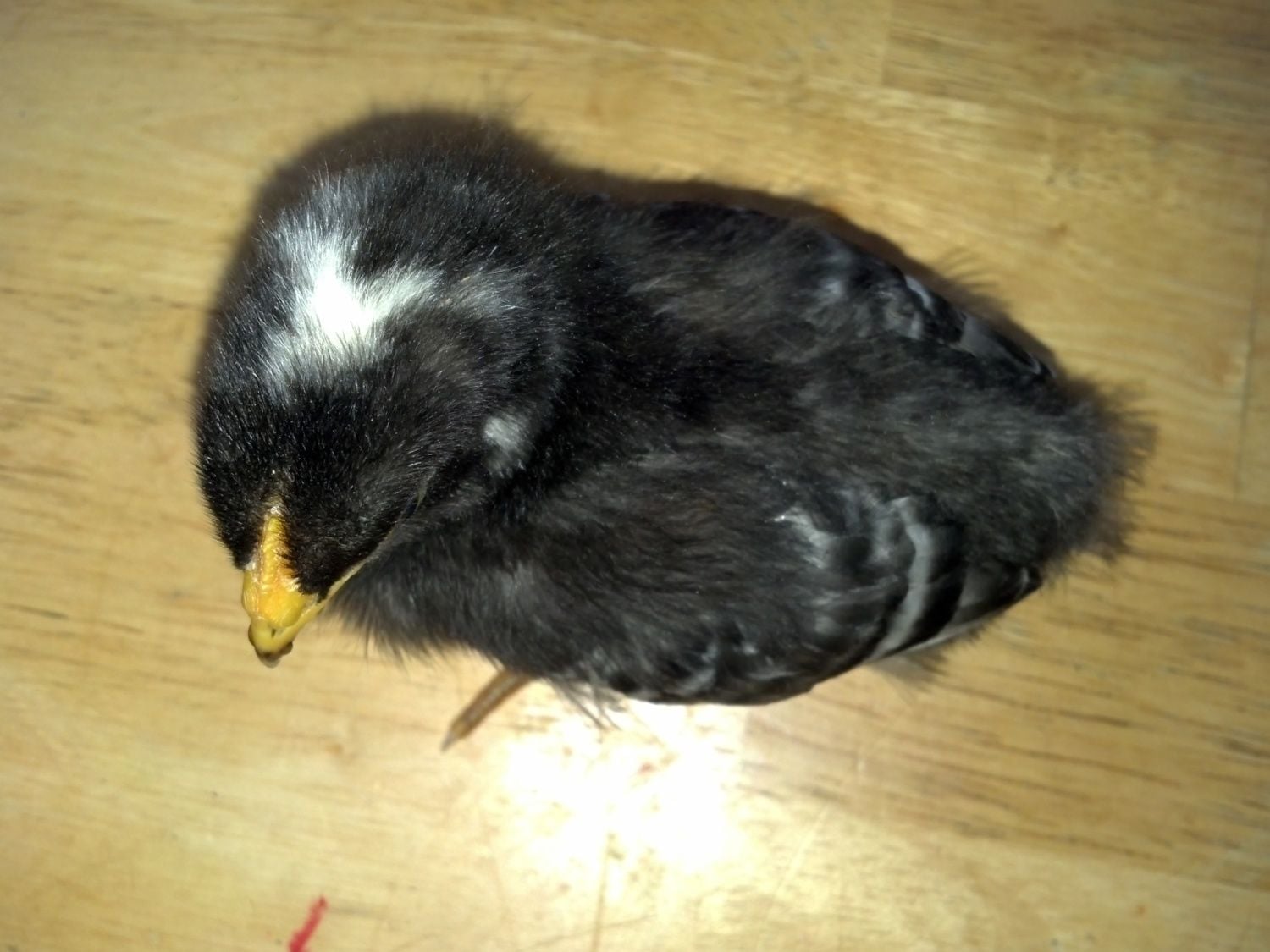 Every barred rock chick has a white spot on the head ...