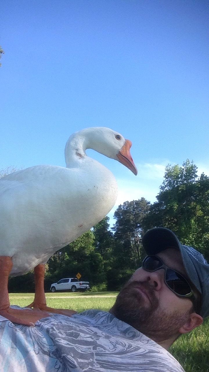 After breeding season is over just spend as much time as you can outside with them. They may never get close I brought home a female Toulouse almost 5 yrs ago for my gander and she still doesn't like to be touched or handled. She will take meal worms from me now. My gander is way to familiar with me since he was hatched here. But right now the geese are just ornery things and nothing short of tying them up is going to do much to tame them. Just keep up with what your doing, not letting him get the advantage of you. It's a daily thing here too. Now my gander and Muscovy drake are fighting so I am having to keep them apart. So much fun living with these birds isn't it. lolLeonardo has a death wish! This is the 3rd time I've had to grab his neck and show him who's boss, he's not getting it! I did have fun annoying him a little yesterday, while holding his neck I picked him up and rubbed his belly and dang did he get mad. He had both girls screaming right along with him but they wouldn't get too close. LOL I think after mating season they will be separated and I'm going to try and tame these wild critters. Any suggestions? I don't even know how old they are but I sure wish the previous owner would have spent some time with them so they wouldn't be so afraid of us.