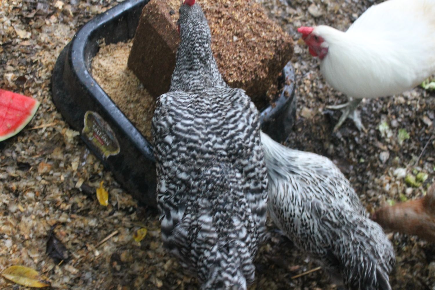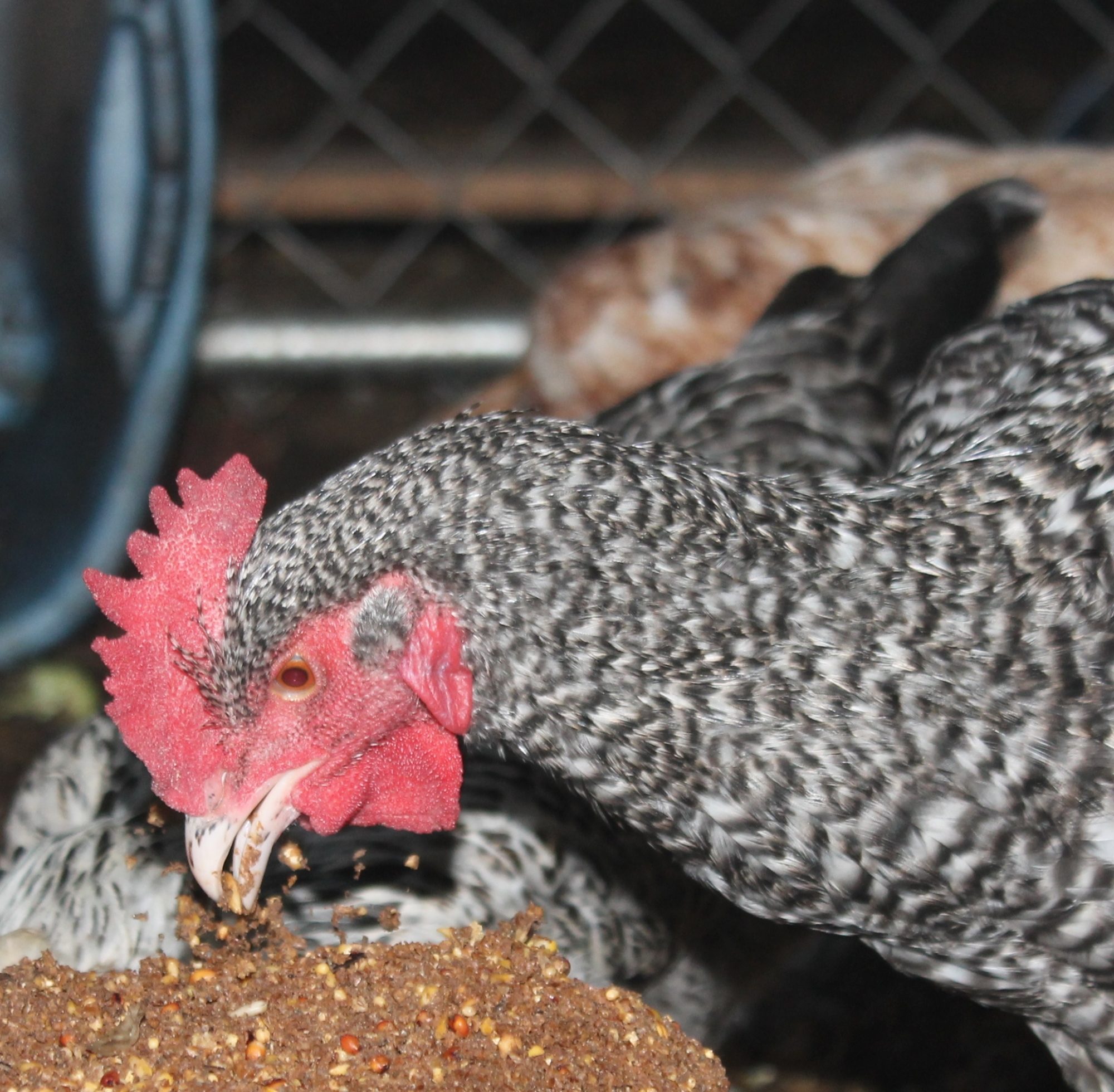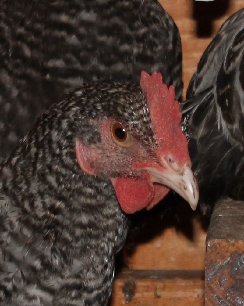 I did get more pictures this morning - and WOW I see a huge difference in the comb (which makes me think it's a boy)... But I also got another picture where it looks like there sort of are "stripes" of color BUT only across her/his shoulders - no where else.