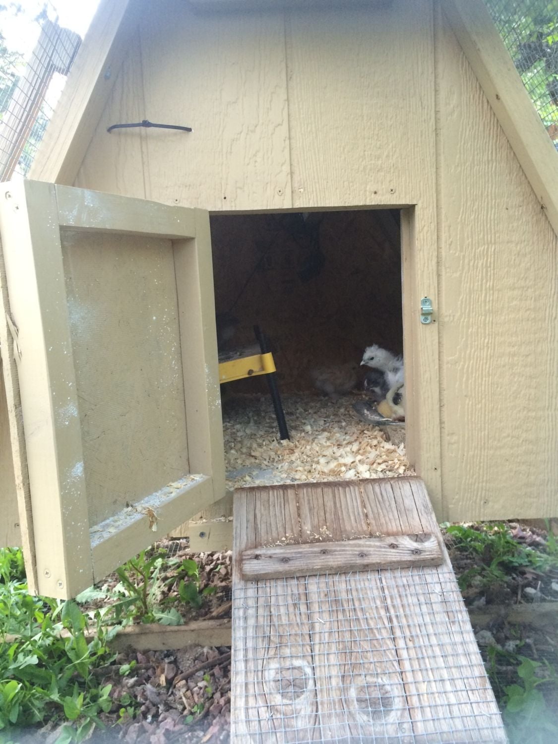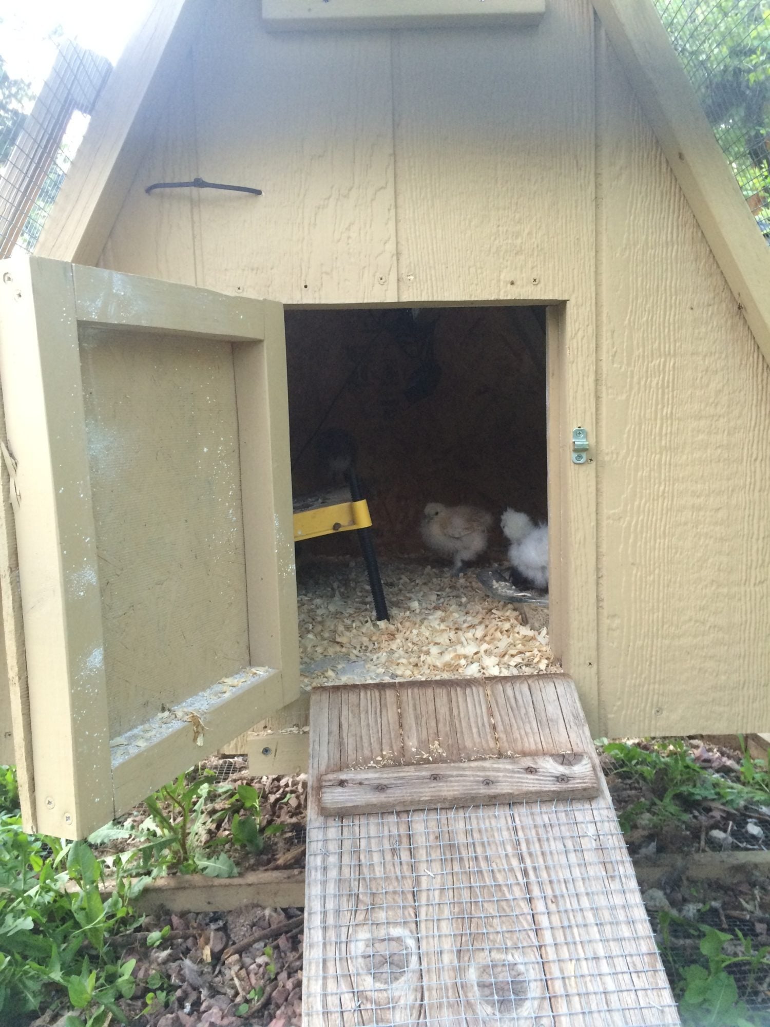 I have 15 2-3 wk old chicks who will not stay contained in their indoor brooder. They keep flying out and getting stuck away from their food/water/heat, I've already blocked the top but they fly out anyways, so I moved them into my small outdoor coop with their Ecoglow heater. It has an enclosed top where the food/water/heat is and it has a ladder leading into a completely enclosed outdoor run.