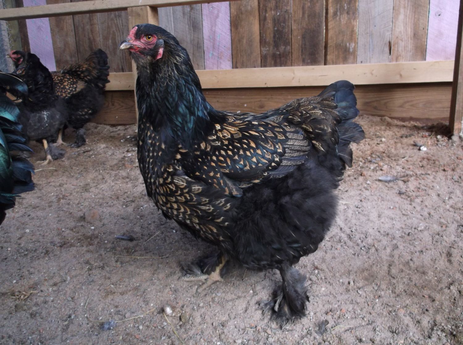 I think the owner said she was a Buff Brahma but she must be a laced variety, right? Her lacing is so distinct especially on her feathery legs. Very quiet and shy.