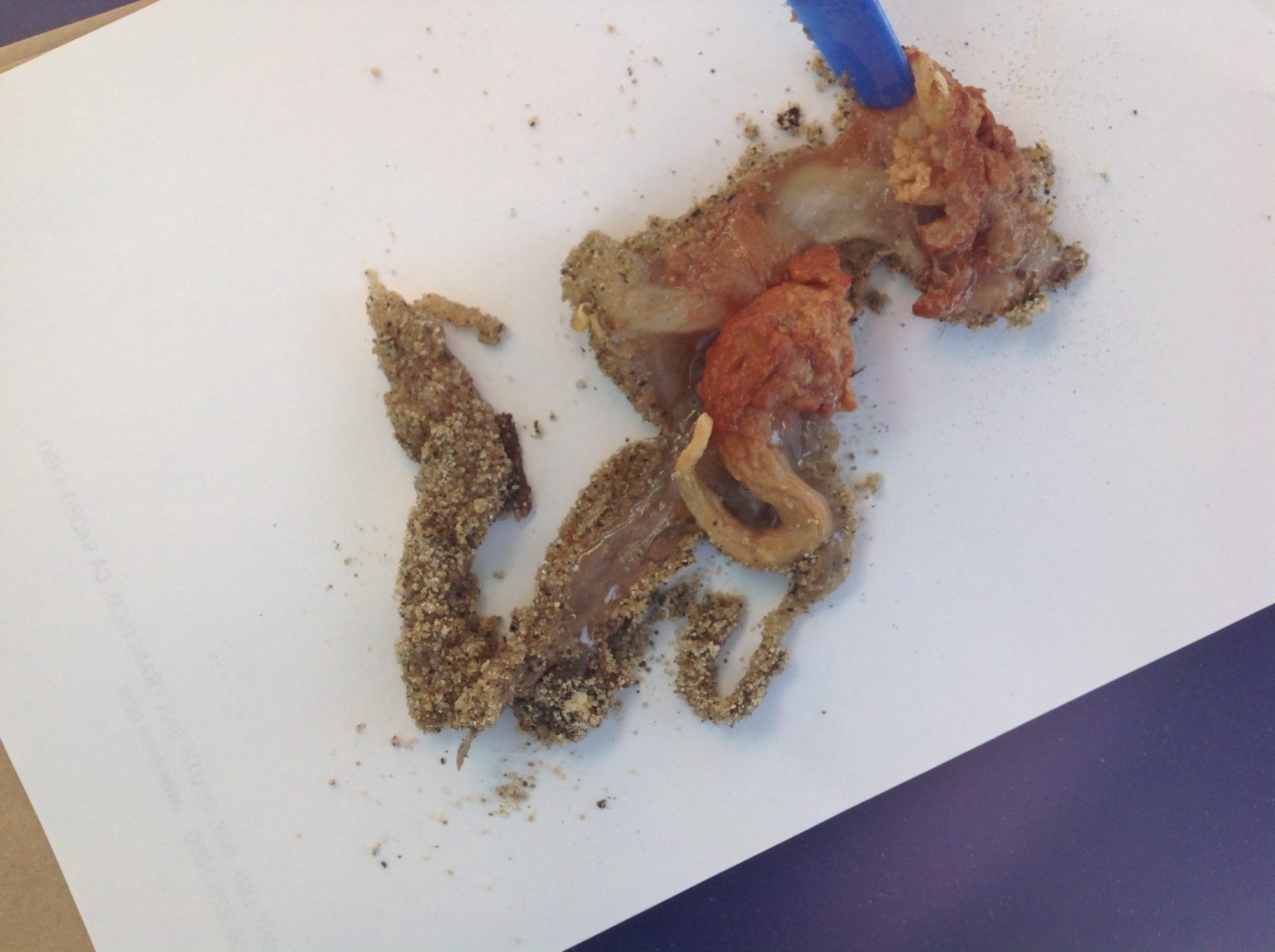 Can someone help me with this? I found it yesterday under the area my chicken roost when I was cleaning the coop (poop zone). I have 4 hens... I have noticed that occasionally this spring one of them has had eggs without shells and they are in the "poop zone" not the nest box. All my hens act healthy and I have no idea which is having the shell problem. I cut into this with a plastic knife and it was firm.