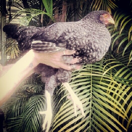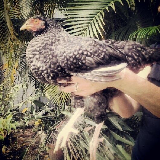 Hello! This little girl was sold to me as a mottled java, her sister looks just like a mottled java but she has different colored legs and feathers. Do you all have any idea what she could be? Perhaps a Barred Rock?