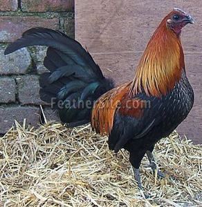 Wow, that is fascinating! Thanks for taking the time to post this.The Hf gene is the Hen-feathering gene. [COLOR=333333]CHICKEN Summary : The typical feathering of hens is part of their secondary sexual characteristics, produced by the action of estrogen. Much of this estrogen is produced from androgen in the ovaries by the enzyme aromatase. In certain strains of two breeds of chicken, namely the Sebright Bantam and the Golden Campine, roosters have the same feathering as hens, rather than the typical male form of feathering. This disorder is called henny feathering. It results from a mutation in the aromatase gene, causing thr gene to be expressed in the skin of both sexes. In males, this leads to abnormally high levels of estrogen, which in turn produces henny feathering. Henny feathering is interesting because it illustrates that not all mutations result in loss of activity; some mutations can cause a gene to be switched on in cells in which it is normally inactive. Clinical Summary : Apart from the hen-like feathers, males with this trait have a substantially reduced reproductive ability, probably because the increased levels of plasma estrogen inhibit spermatogenesis (George et al., 1990) Inheritance : The aromatase gene is autosomal incomplete dominant gene, but the form of inheritance of henny feathering is not what is normally seen with an autosomal mutation, because the phenotype associated with the mutation (henny feathering in males) can be seen only in males. This is an example of a sex-limited trait. Furthermore, the normal expression of the gene is seen only in females. Thus the two alleles at the one locus give rise to the two possible forms of sex-limited inheritance. The henny-feathering mutation also illustrates how two alleles can present more than one form of inheritance, depending on which trait is being considered. With respect to aromatase activity, gene action is co-dominant, i.e. heterozygotes have an enzyme activity mid-way between that of the two homozygotes. In this case, however, the activity in the skin of the normal homozygote is zero. With respect to feathering, the mutant is dominant, because heterozygotes produce sufficient enzyme in the skin, and hence sufficient oestrogen, to cause henny feathering. [/COLOR] [COLOR=333333]Molecular Genetics : This disorder is the first insertion mutation documented in any domesticated species of animal. In this case, it appears that the terminal repeat sequence of a retrovirus has been inserted into the 5' promoter region of the aromatase gene (Matsumine et al., 1991). This terminal repeat has a promoter of its own, which causes the aromatase gene to be switched on in atypical places, such as the skin of both sexes, giving rise to the henny- feathering trait in males. The actual peptide produced by the mutant allele is exactly the same as that produced by the normal allele, as we would expect for such a mutation. Mapping Summary : The Hf locus is located on the long arm of chromosome 1. [/COLOR][COLOR=333333]Information above from Ultimate Fowl[/COLOR][COLOR=333333] [/COLOR] The henny gene can also be found in some other breed including gamefowl. Photos not mine-- Brown Red Henny MaleNormal Feathered Brown Red Male