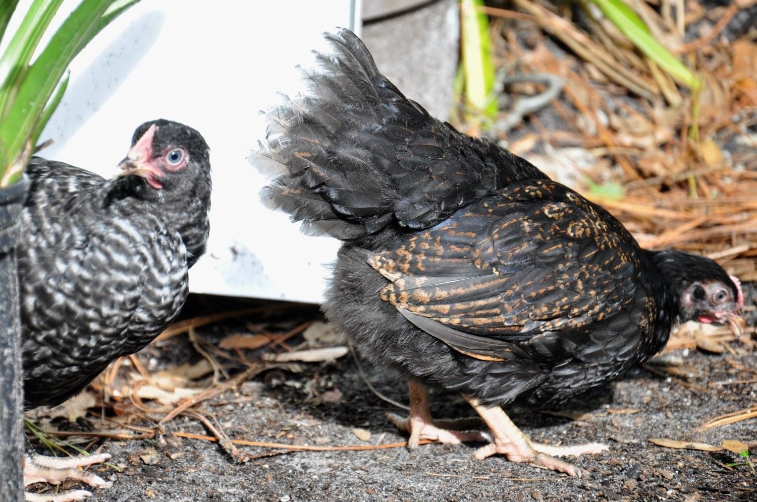 I just got these 8 week old pullets from a local farm. I know the one is a Cuckoo Maran but the other was with a flock of Welsummers. She was much darker with a blue tinge and I just fell in love with her. The owner said she may have been a mistake in the egg order and isn't sure. Can anyone confirm that this is a Welsummer or is she another breed? Her tail splits like a turkey. Sooo cute!
