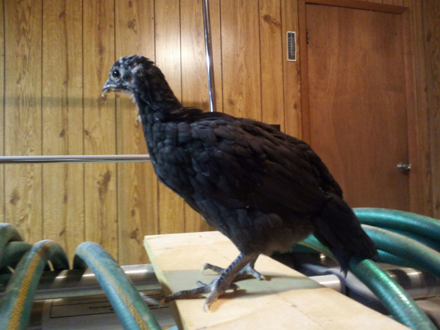 Our black Australorps looked just like that! Tiny white tips on the wings when they are chicks. We have one that has markings that looks identical to yours!
