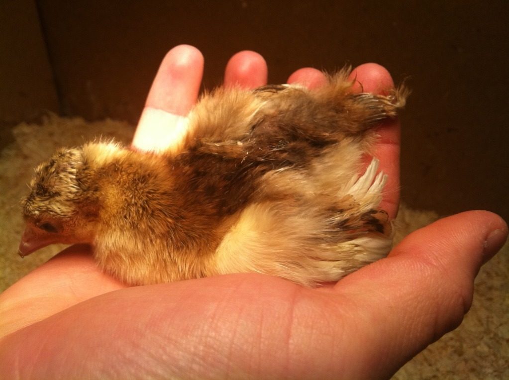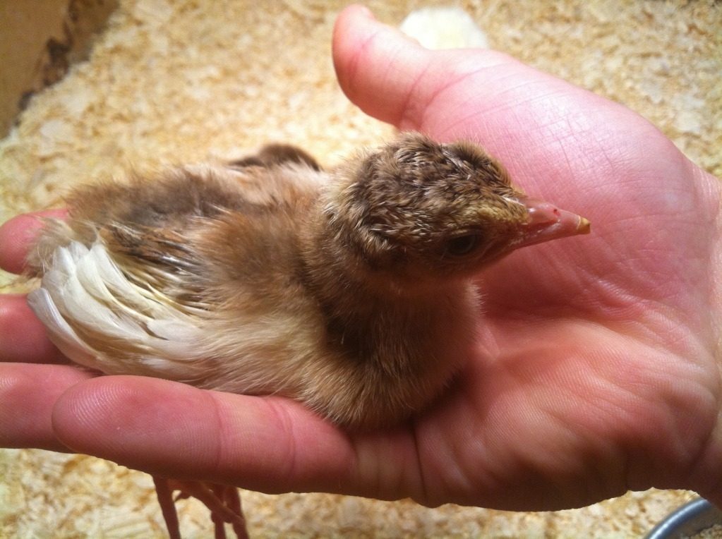 I would say the chick is Cameo. Are you sure the parents are split to white and not pied? I've hatched quite a few split whites from a blue/ white pairing. They only had a couple of white flights on them. None of them had totally white wings. I could be wrong, but I still say pied. But that would mean that the parents had to be carrying pied.The father is an IB male split to cameo and white; the mother is either a Cameo hen or an IB hen (I think she is spilt to white as I just got a white chick from her). I believe it's from the cameo hen because I have gotten chicks with white wings from her before.