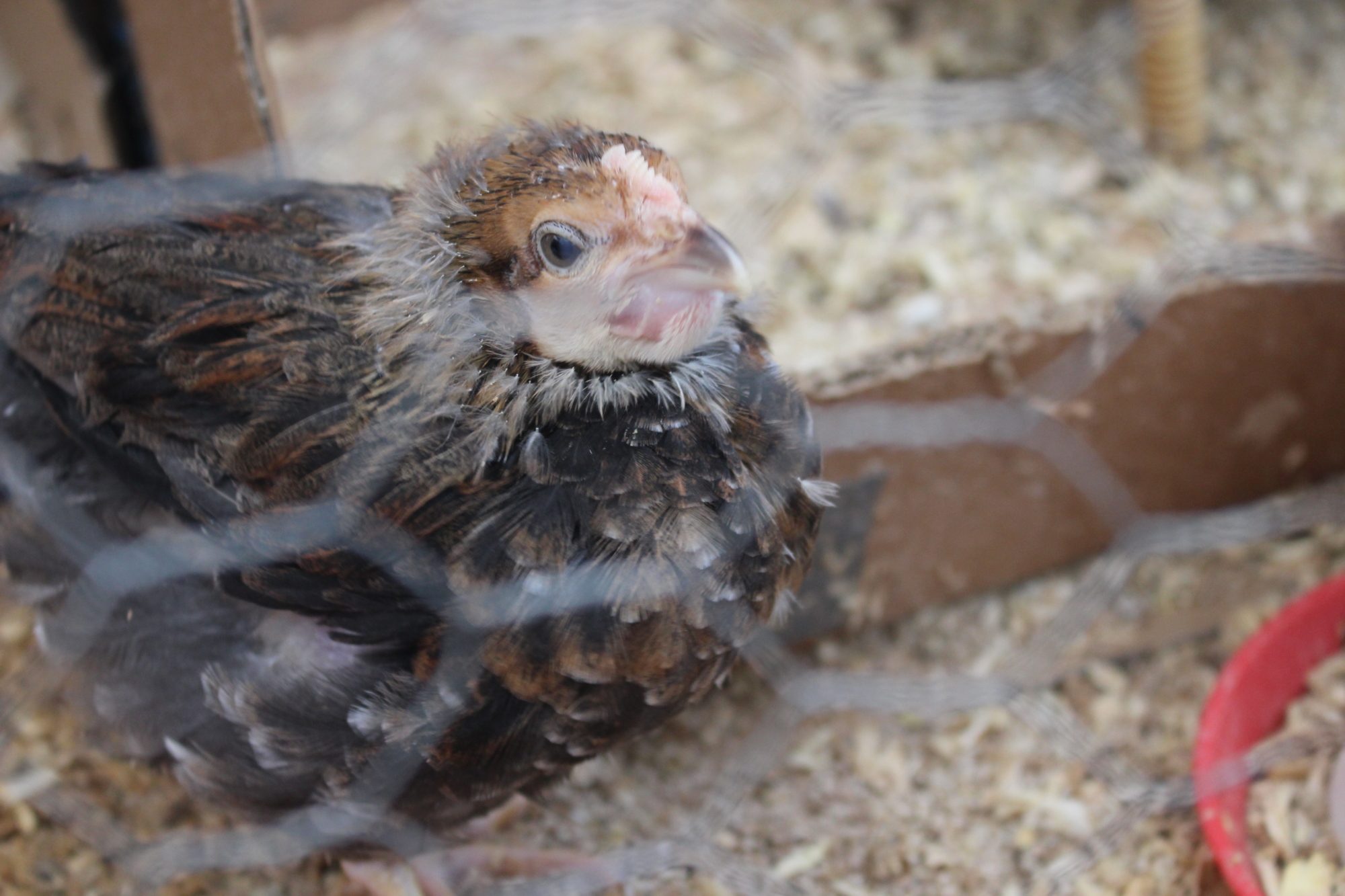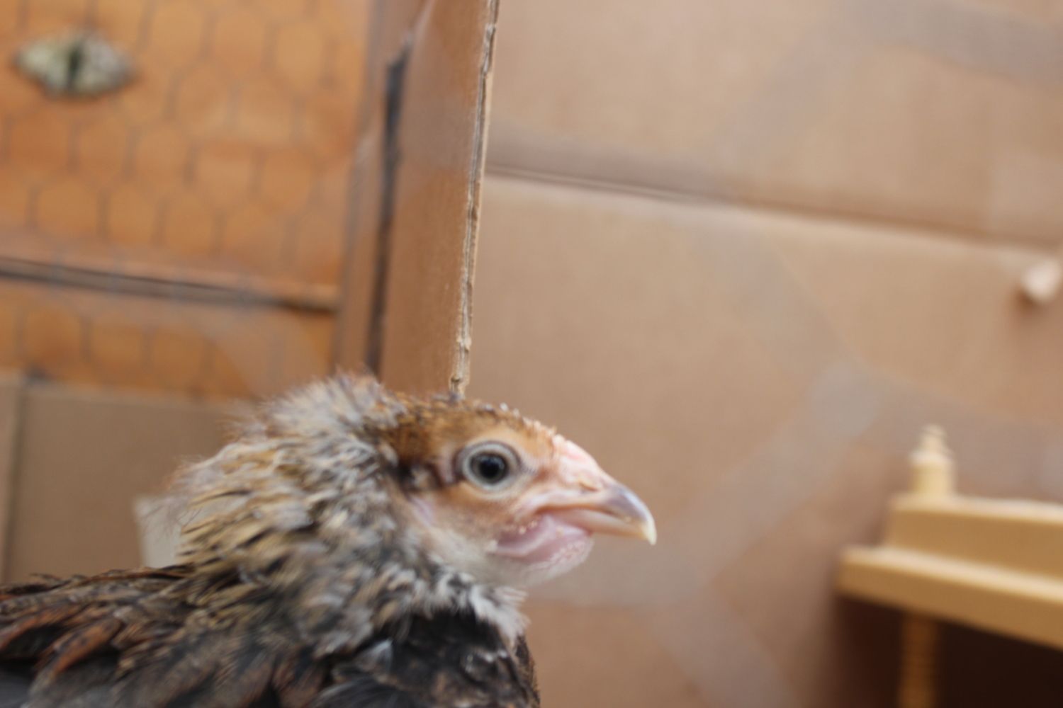 We have three seven week old chicks at the moment. We think two are pullets and one is a rooster. The one we think is a rooster seems to have had some trouble walking over the last week or two - almost as if it's too heavy for its legs. This morning my son said he thought it had an impacted crop - there's a small swelling under its beak. I've tried to feel it, which the chick doesn't seem to like. It doesn't feel too hard. For the moment, we've separated it from the others, but it can still see them. It has some water, but no food. I'm attaching some photos - can anybody tell me if it looks like an impacted crop? Thank you very much.