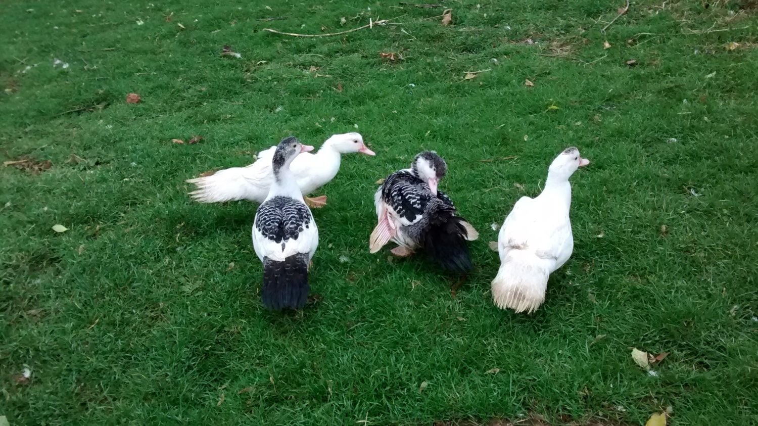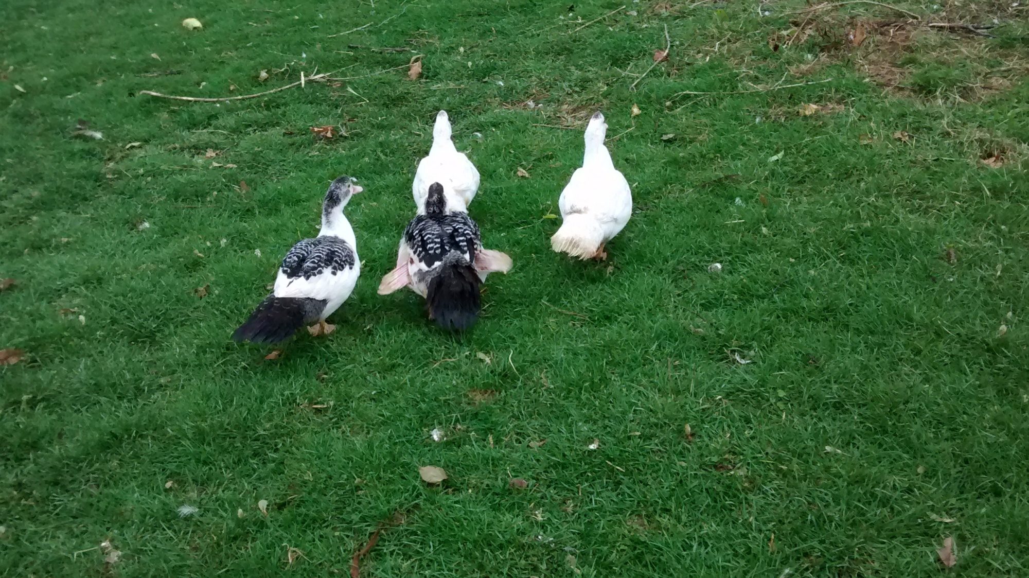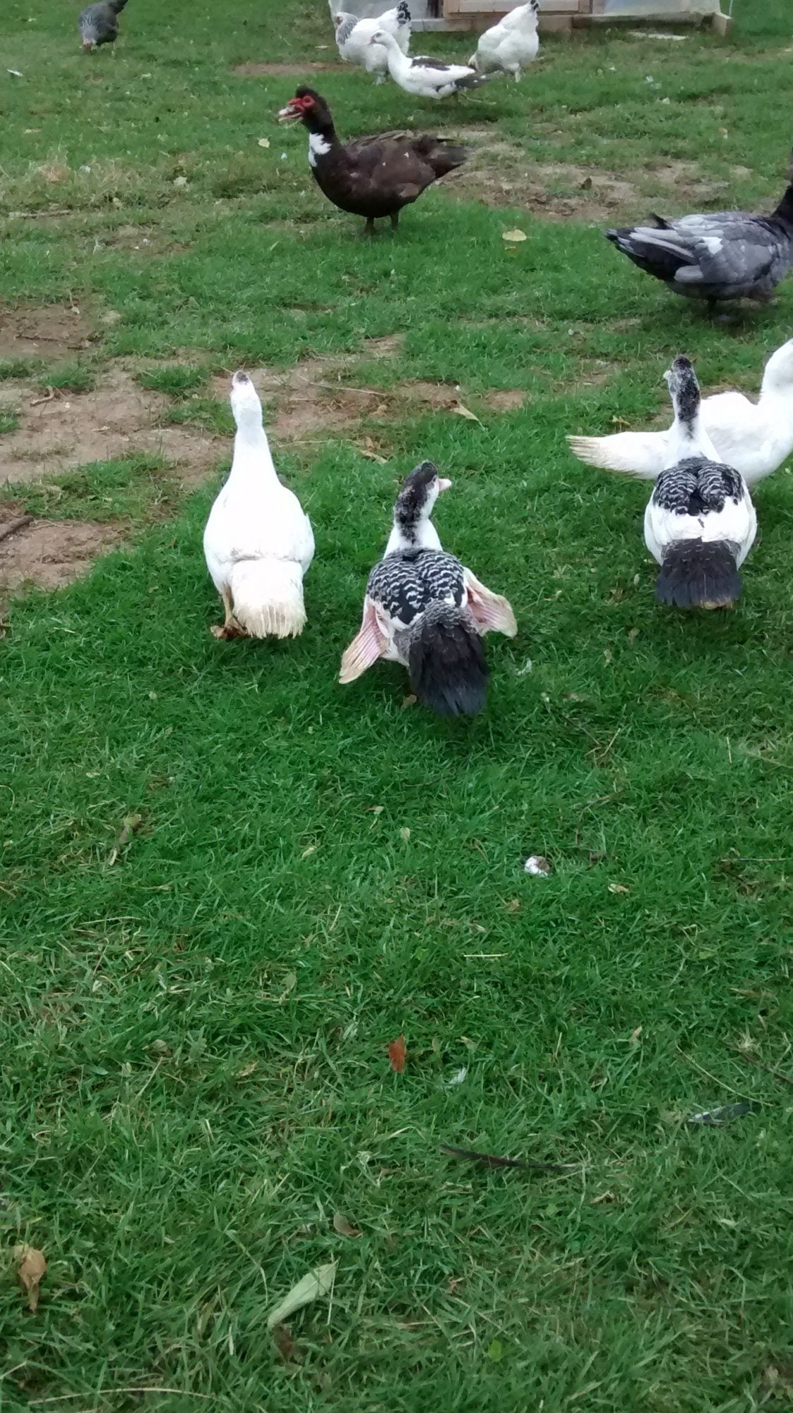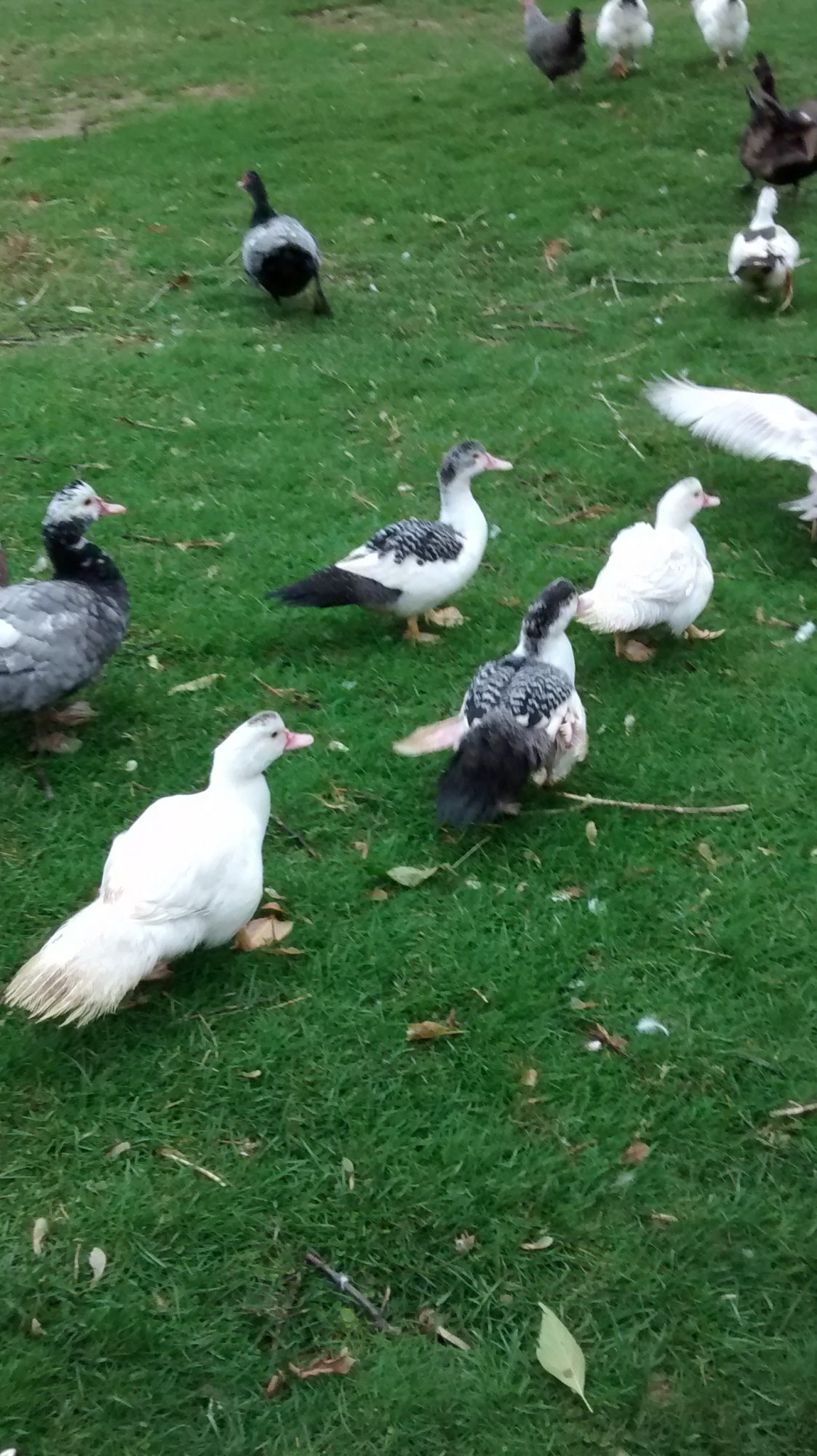 So my sister hatched out a late batch of ducks and gave me 4 of the little ducks once they were 5 weeks old. I kept them separate until they were 8 weeks old (Halloween day) and they did fine. They are eating chick grower with extra niacin. Since all my birds (chickens and ducks) free range together during the day I only feed the chick grower and supplement with extra niacin for the ducks and free choice oyster shell for the chickens since I have so many drakes running around ( 9 so far) I didn't want to use a layer feed and potentially make them sick.