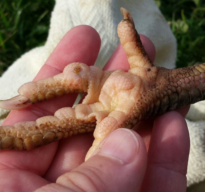 Part two of my question is about how the vet said to deal with bumblefoot. I have seen the tutorials for treating bumblefoot which require cutting out the scab, removing infected tissue, and bandaging the foot. I didn't want to do it, so I went to an avian vet. She just cleaned the scabs really well (removing scab tissue until it was all pink) and then told me to do the same every day with the chlorhexidine every day for a week. She said that since the bumblefoot was minor, it didn't require more than that. And she said not to bandage it at all. (she said bandaging would make it take longer to heal, because wounds need air to heal. But I know that's a myth when it comes to injuries on humans, so I'm not sure why it would be true of chickens).