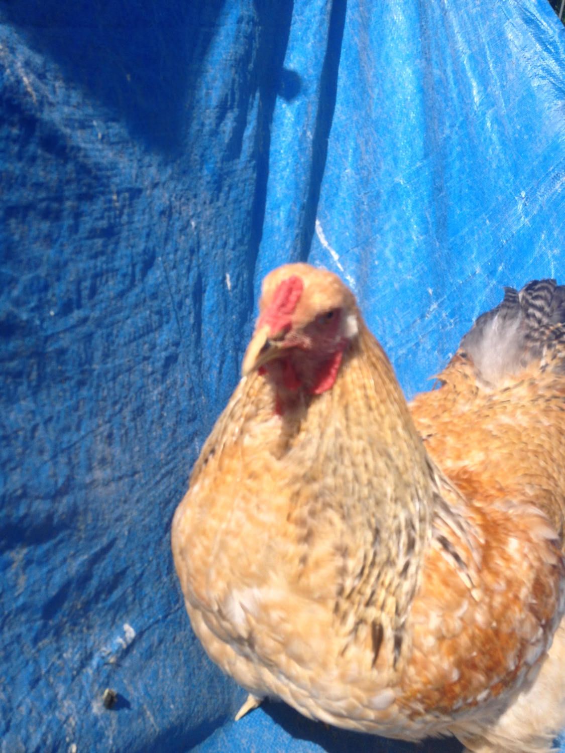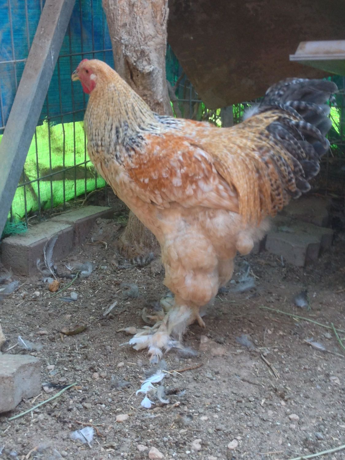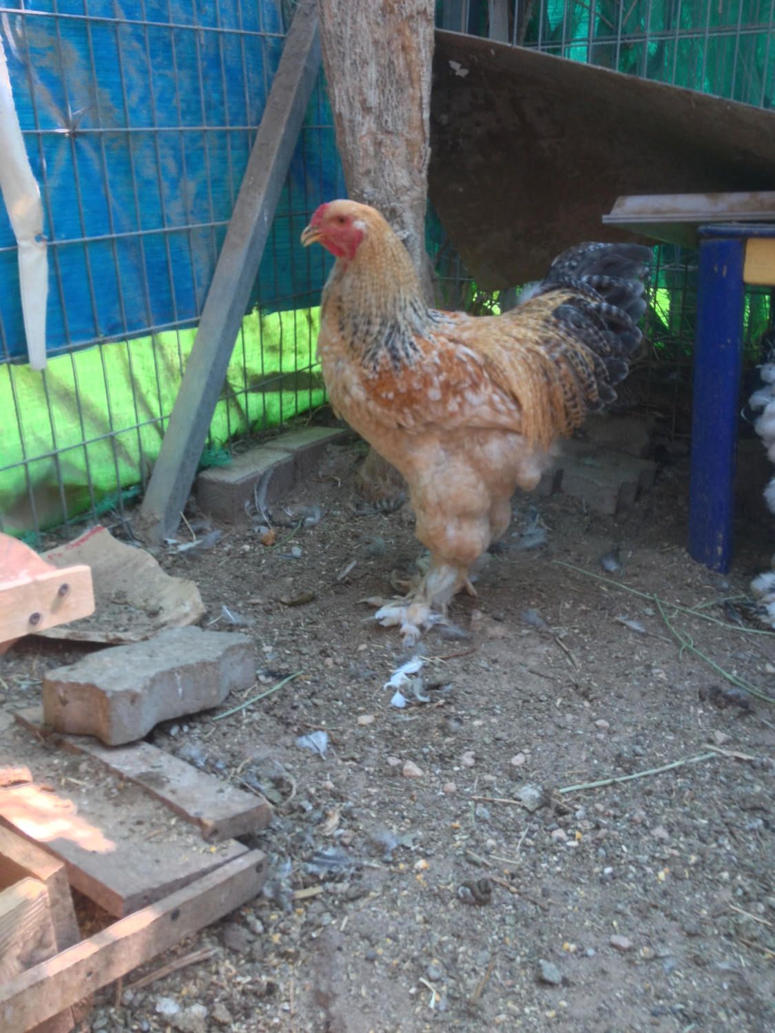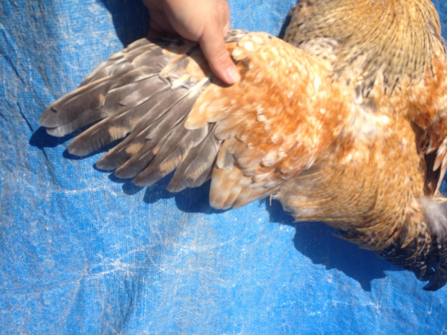 No he is not a carrier of blue. If he carried blue his black feathers would be blue. He will not breed any blue chicks. You must have at least one blue or splash parent to get blue offspring. Blue can only be "hidden" in self white chickens.