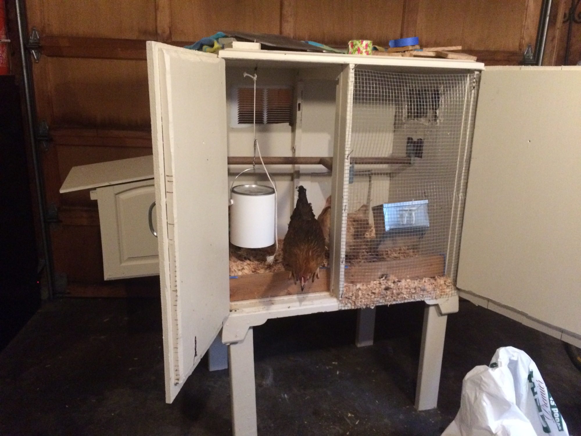 We lowered the roost this weekend since the chicks were starting to bump their heads on the ceiling.