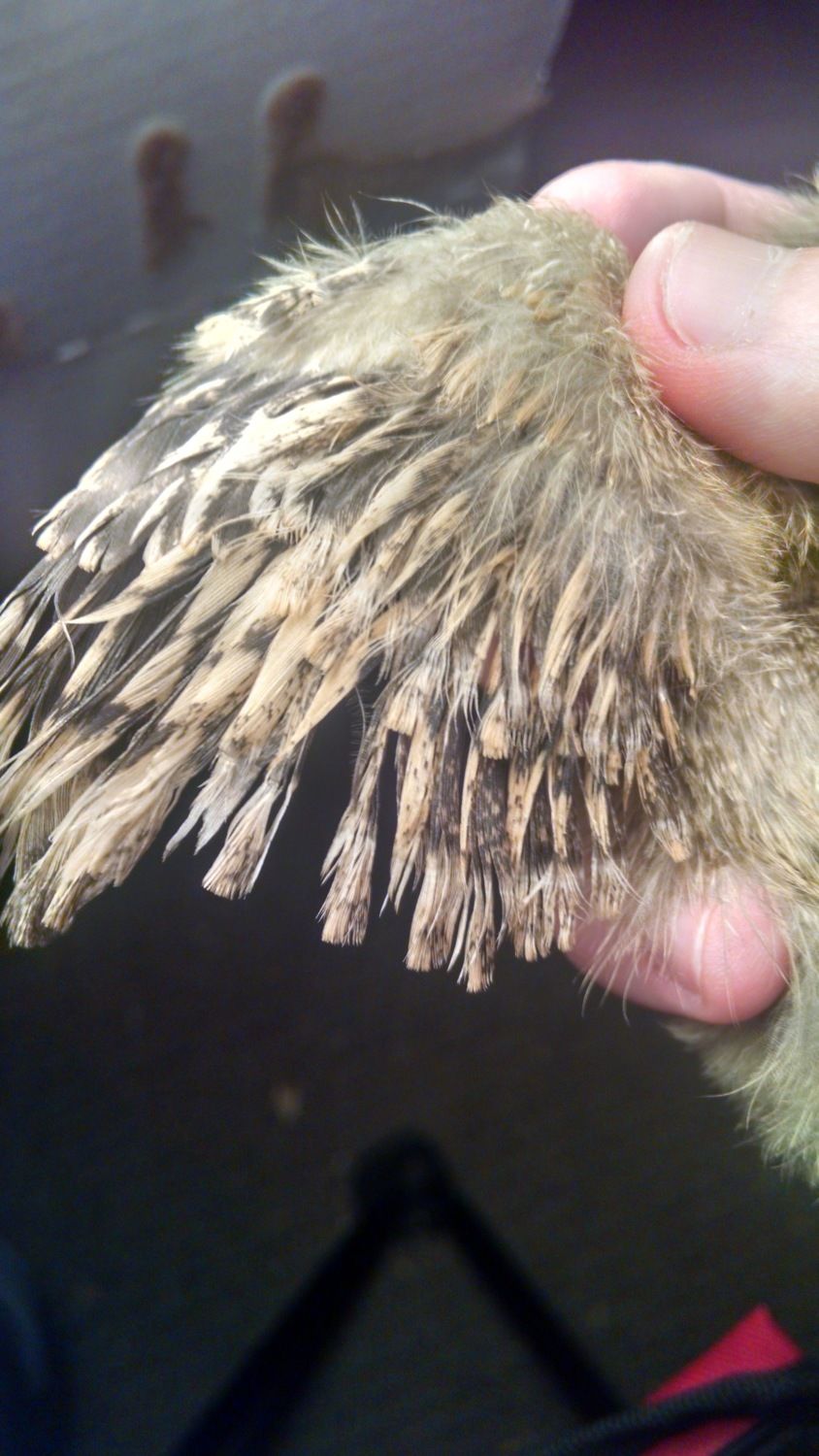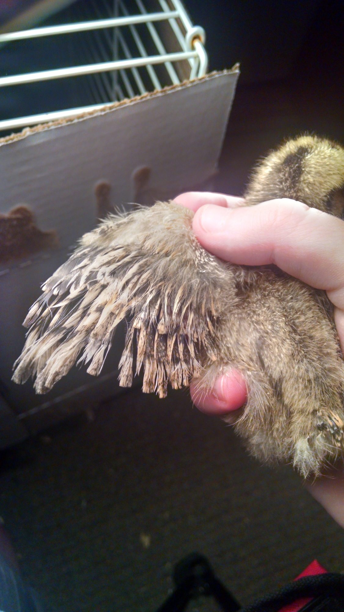 I noticed something freaky was going on with its feathers and I was kinda worried until I realized they looked an awful lot like silkie wing feathers. But I haven't owned many so I'm not one hundred percent certain on that.