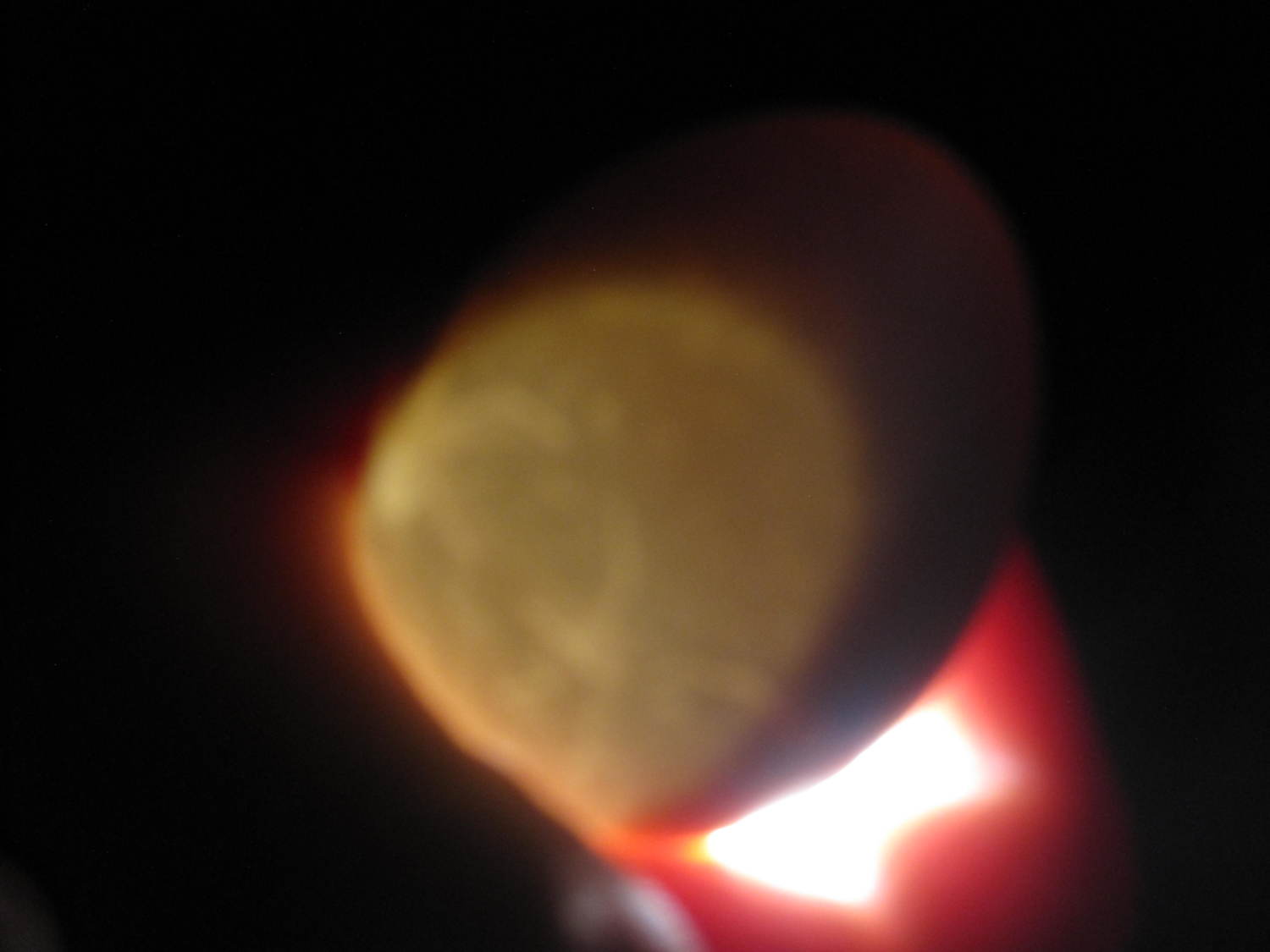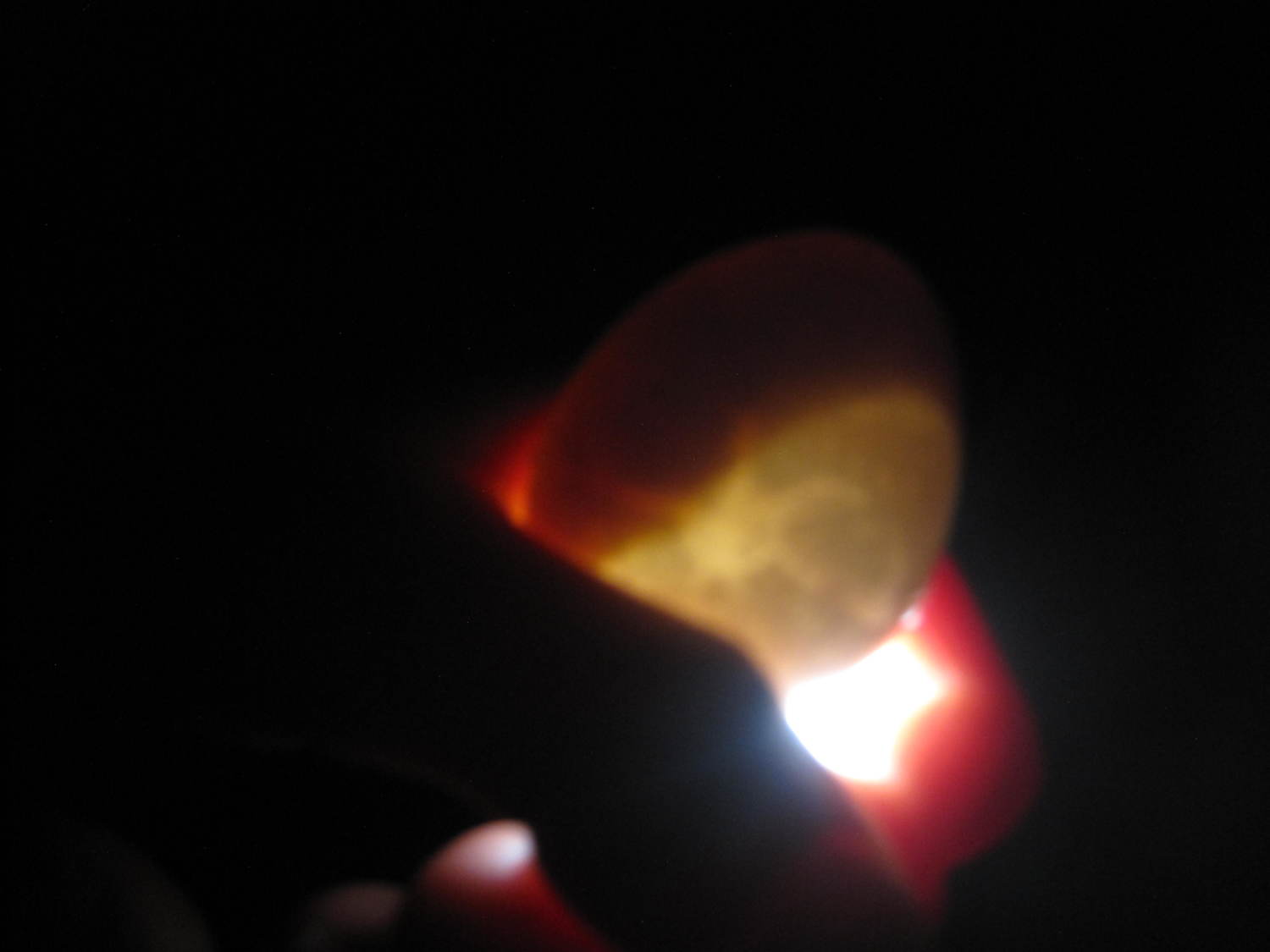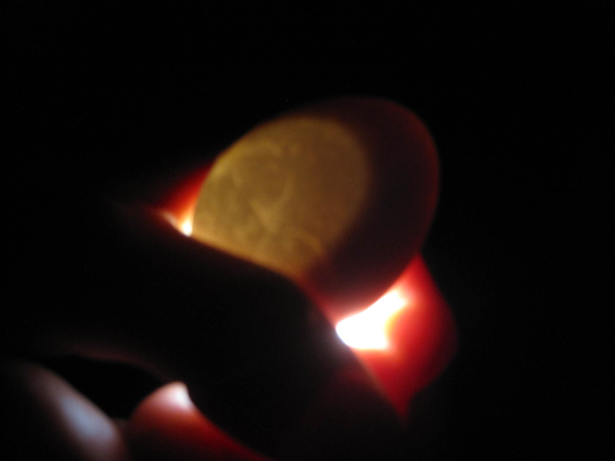 Last Thursday we received some eggs that we had ordered a few days before. Out of the 6 shipped eggs, 3 had loose air cells. However, this one didn't appear to. It has developed, but it just doesn't look right. It looks more developed than 9 days. Is it possible is started developing during shipping? The temp was in the 100's those few days. In addition to that, the air cell doesn't look right. And, it did crack but I sealed it with candle wax. It had started looking like this before it cracked, though.