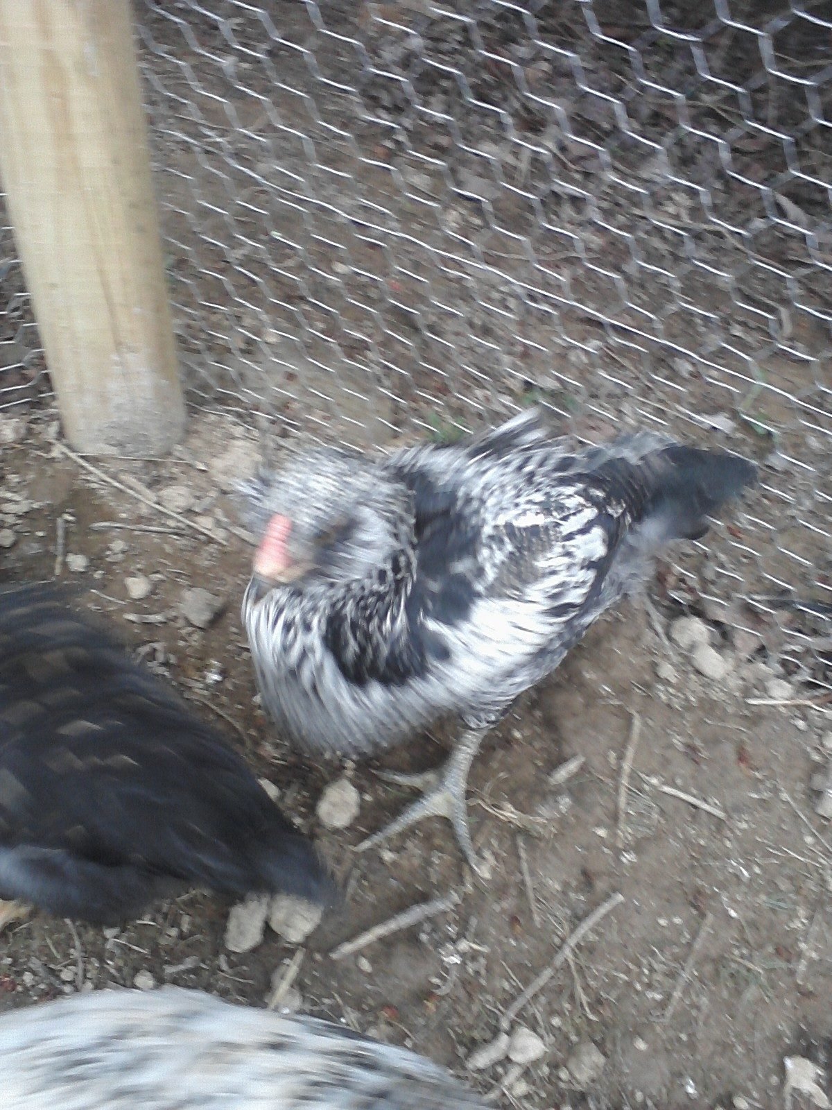I think this EE is a roo....can anyone else confirm? Head shot was a little blurry but "he" is getting a bigger and redder comb than the others that I believe are pullets. The last pic shows the tail feathers which not sure if you can tell from pic but they are coming in blue and green. Legs look thicker than others too.