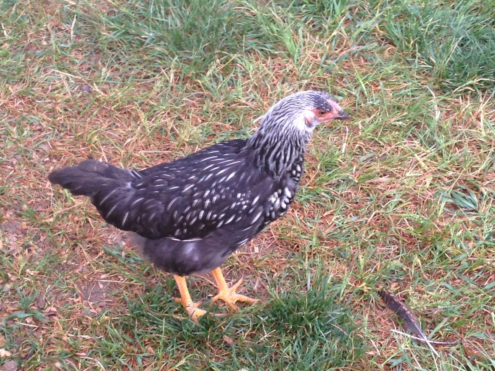 So this chicken is one of 4 that I purchased on March 1...so approx 11 weeks ago. They were brand new chicks. I purchased them as Easter Eggers. The others are the basic brown/black EE pullets. I am unsure if this is an EE. It looks like one of the others body shape, head, tiny comb etc. So two of the EE have puffy cheeks, 2 do not. This is one that does not. I know this isn't a Roo. What do you think? Is it an EE? Oh, the legs are yellow. Other 3 are greenish. Thanks!
