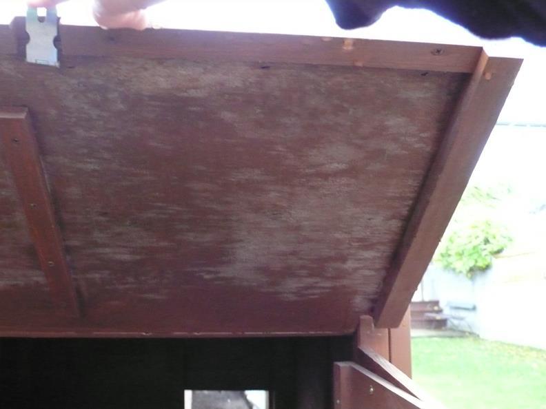 Over time, I notice a build up of white mould (?) on the inside of the roof of the nesting box (see pic). It smears if you run your fingers over it (see pic!). If you wash it with a wet cloth or sponge it disappears.