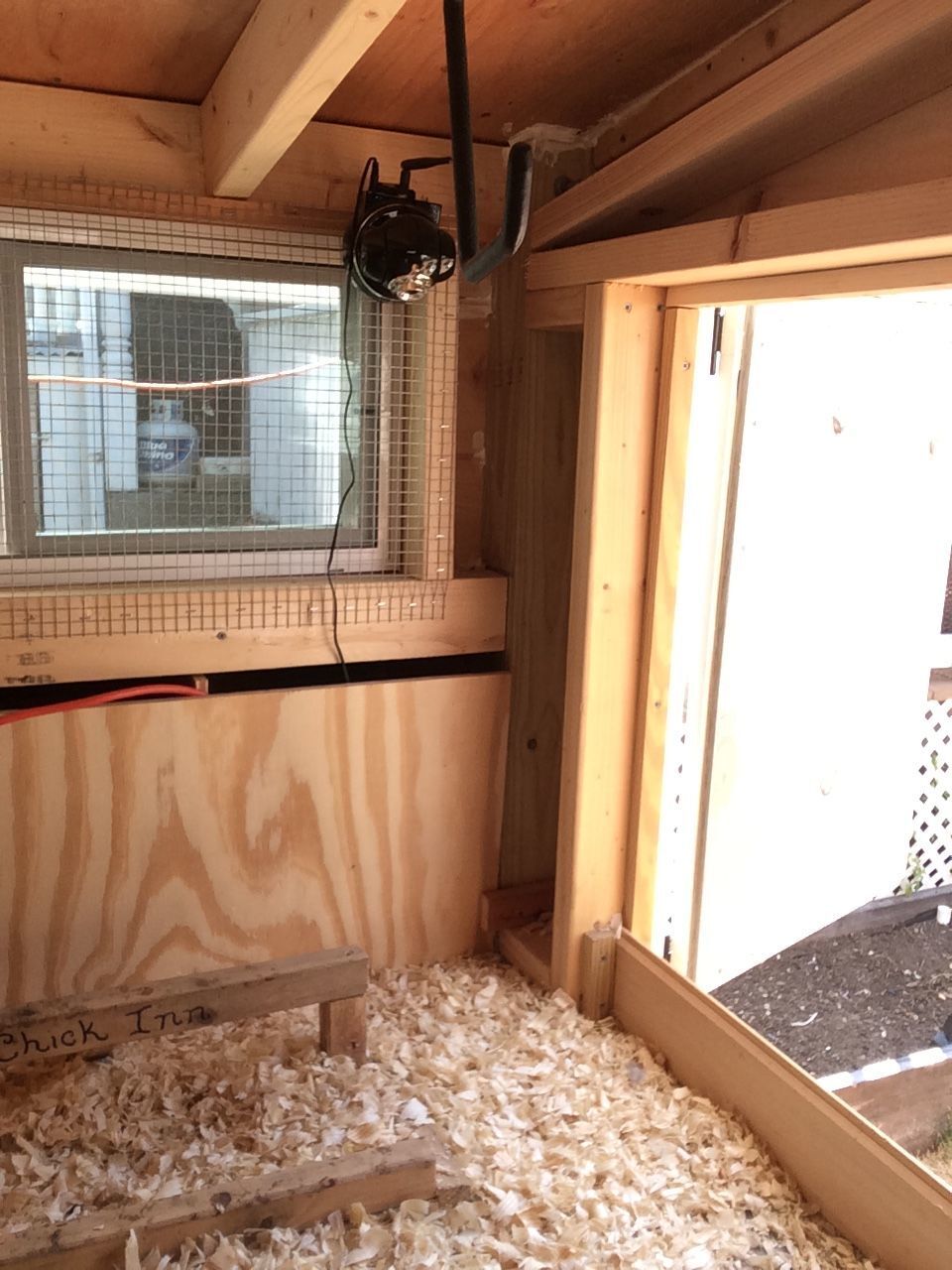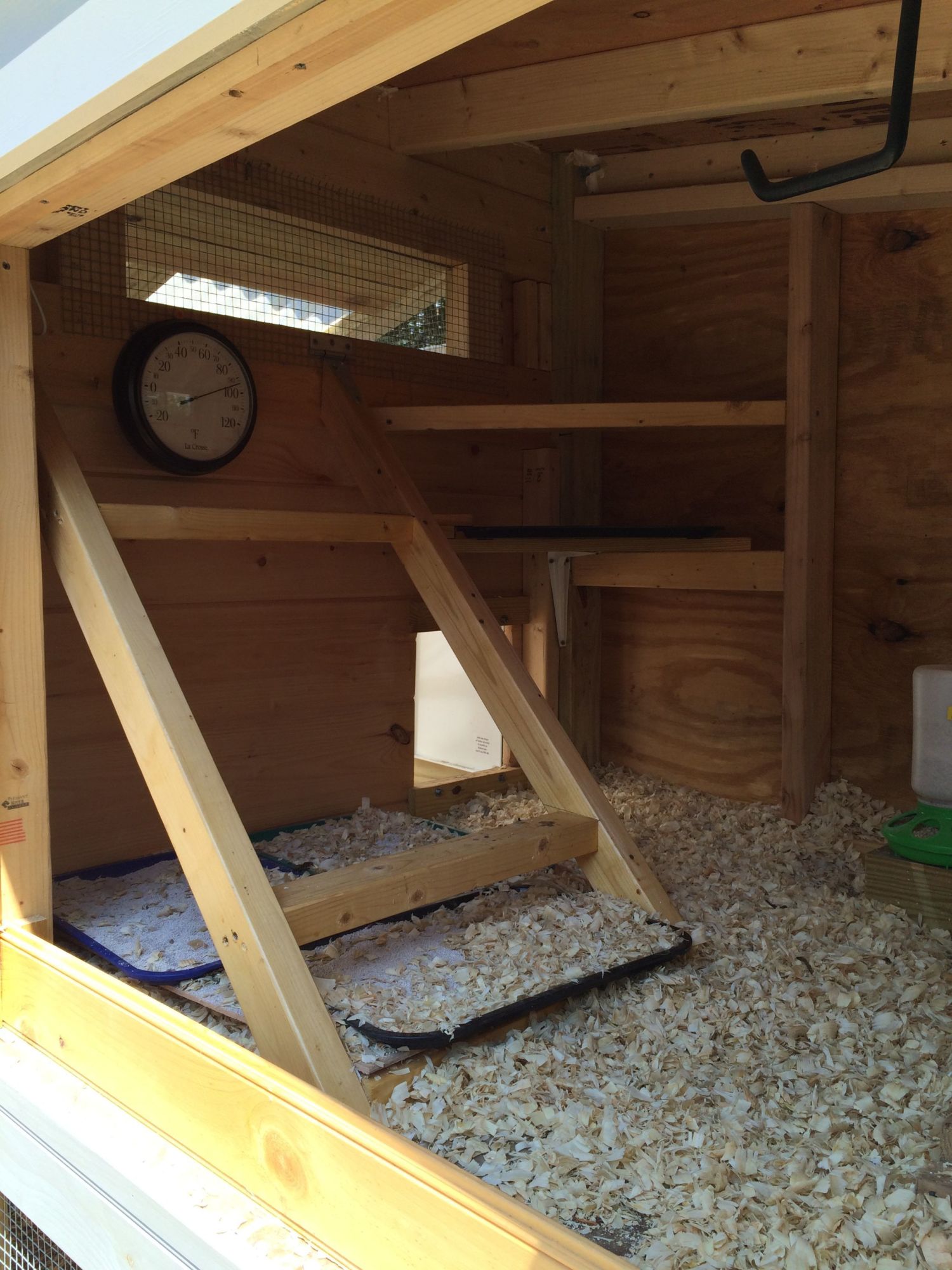 This is the corner they all want to be in. I imagine soon none will fit! It is right up against the closed nesting boxes.