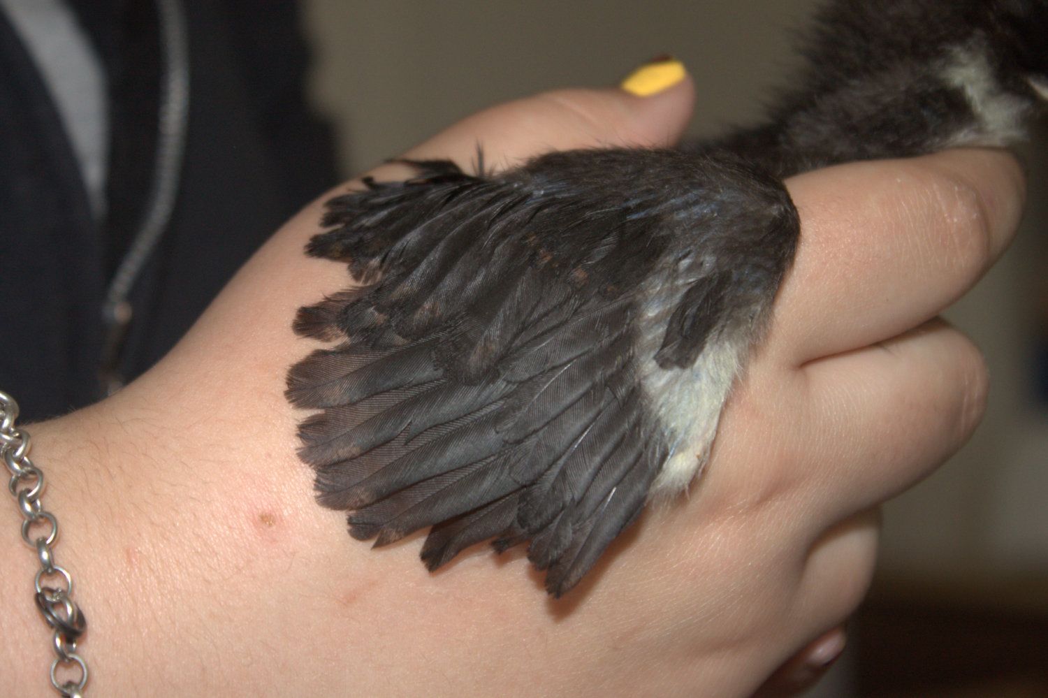 Close up of her/his naked back and you can see the goldish/brown color feathers coming in.