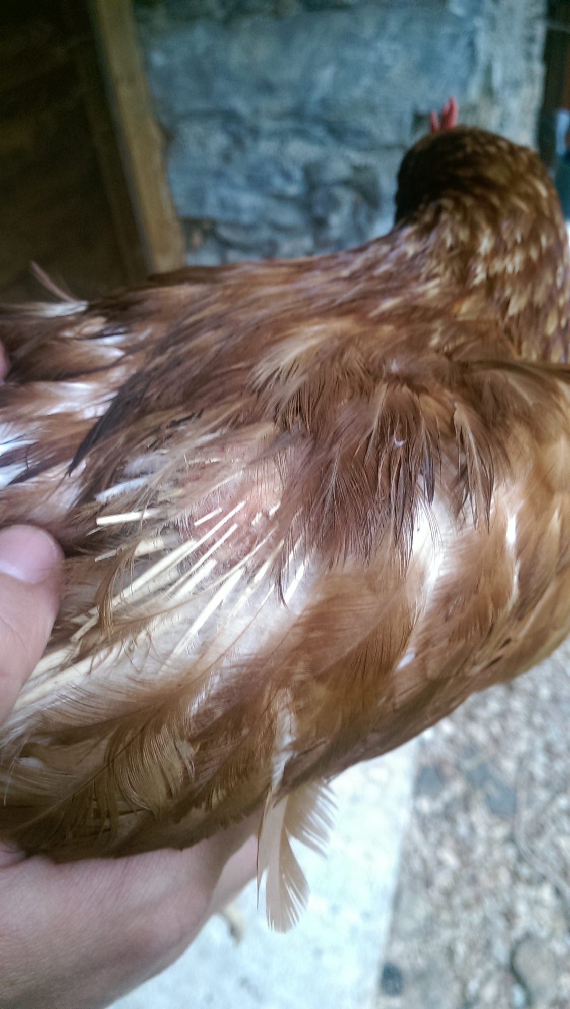 We are in our first year of chicken keeping. I thought this was a moult when it started, and 3 of our hens look like this but this one, Margot is in the worst state. She seems happy, eating and laying etc but can you see that pinky orange bulge at the root of the feather quill? It looks odd, does anyone else think so? (it is raining so she is a bit wet too)