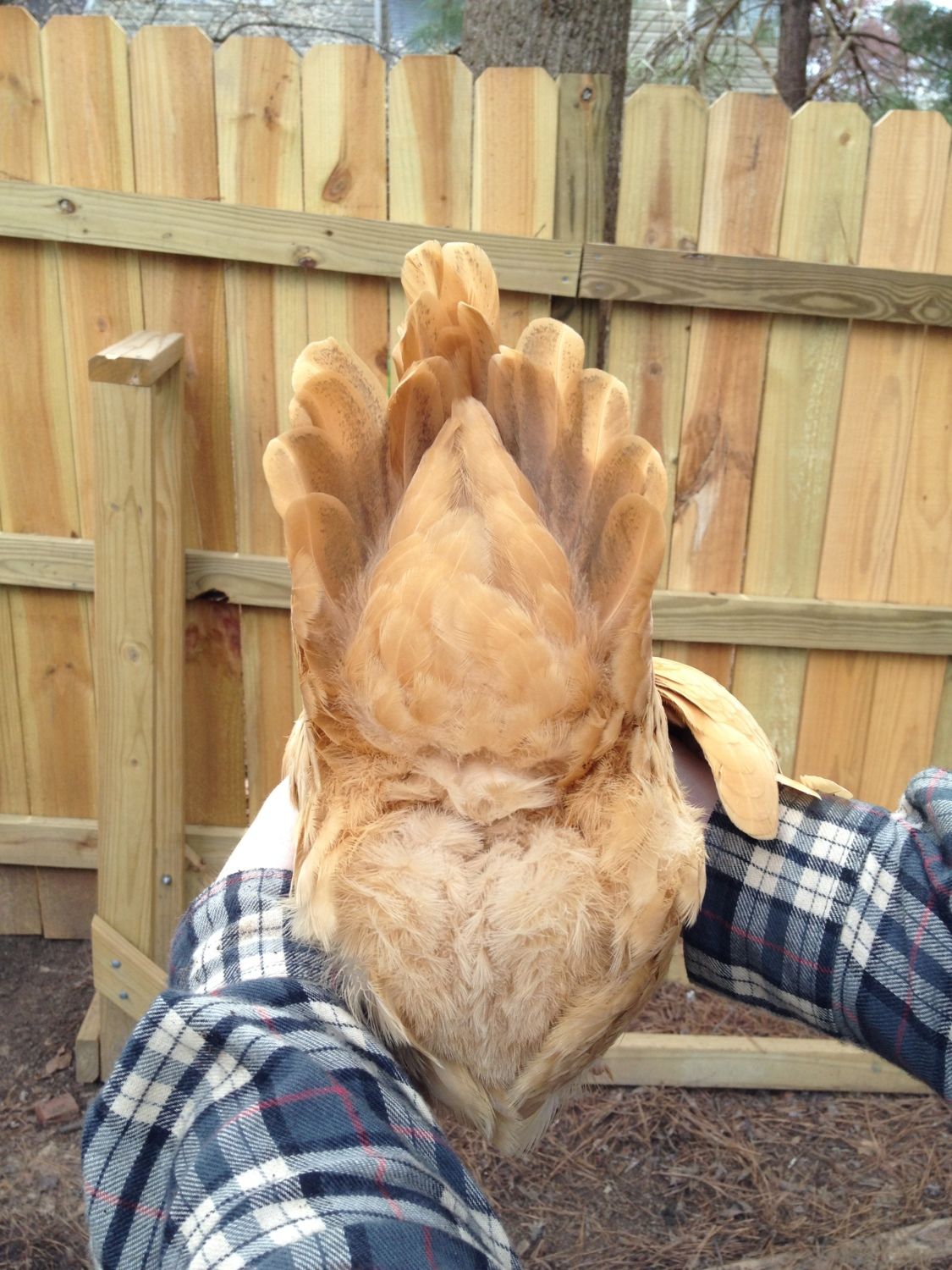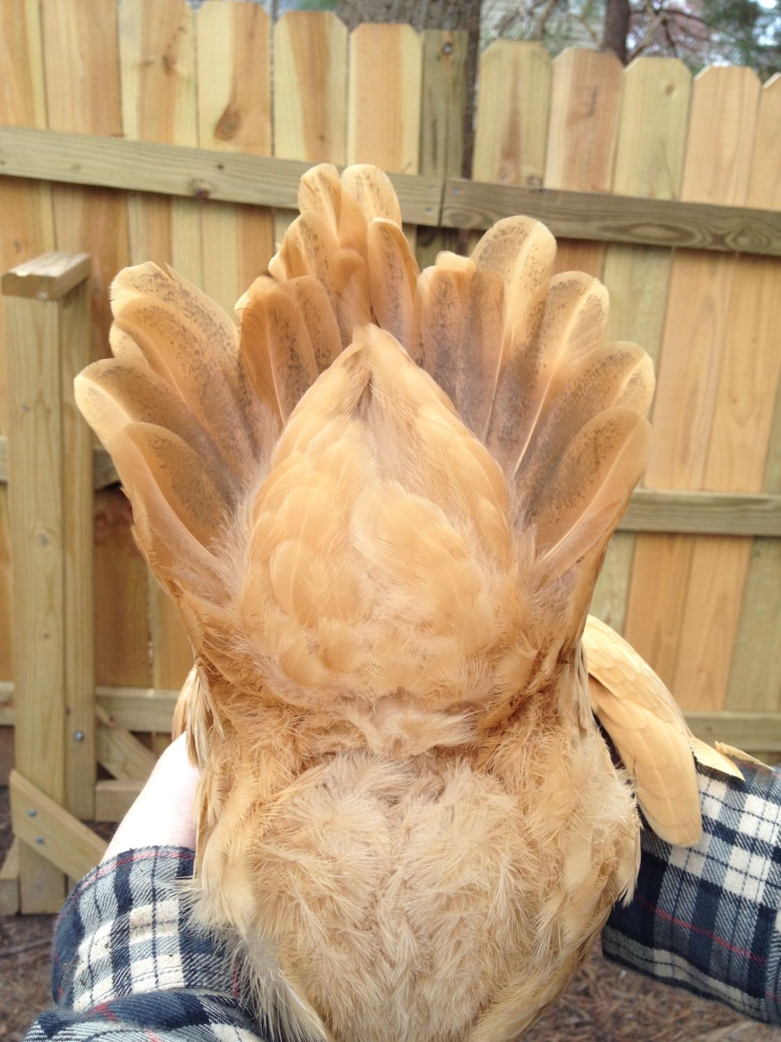 I haven't been able to get out to take another picture. I will tomorrow morning. This hen is actually the smallest of the bunch, but her comb and waddles are noticeably fuller than the other three hens. She looks exactly the same as the other birds except for those.