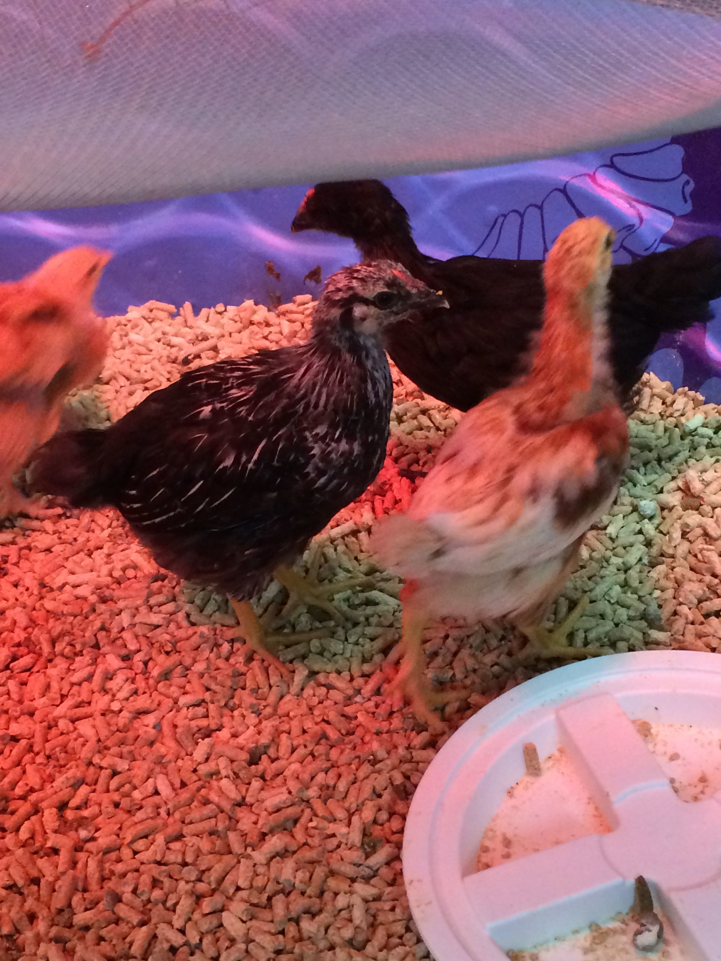 This silver laced wyandotte has always been a little bigger than the others from day one, and a bit bossy. She? is about 4 weeks old, and different than the other 3 chicks. I have a black sex linked, a golden sex linked, and a buff orpington chick in with her. The others all have similar looking yellow combs and their feathers look similar. The SLW's comb looks like an upside down V (last pic) , and is grey and pink, and smallish bumps. Hackle feathers are coming in long. Tail feathers look different, kind of rounded?.... not straight like the others. Worried I may have ended up with a roo.