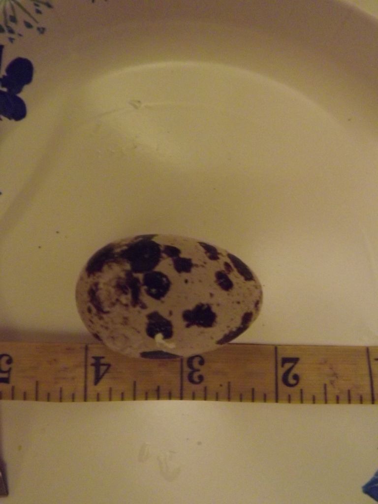 One of my quail just laid an egg that's more than 3 inches long! Biggest I ever seen! Normally my quails' eggs are bigger than the one sold in grocery store but this one was huge! It's just slightly a bit smaller than a chicken egg! Have anyone gotten an egg that big?