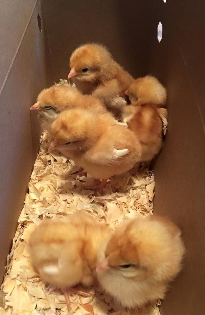 Here are the chicks shortly after they hatched with some RIR chicks.