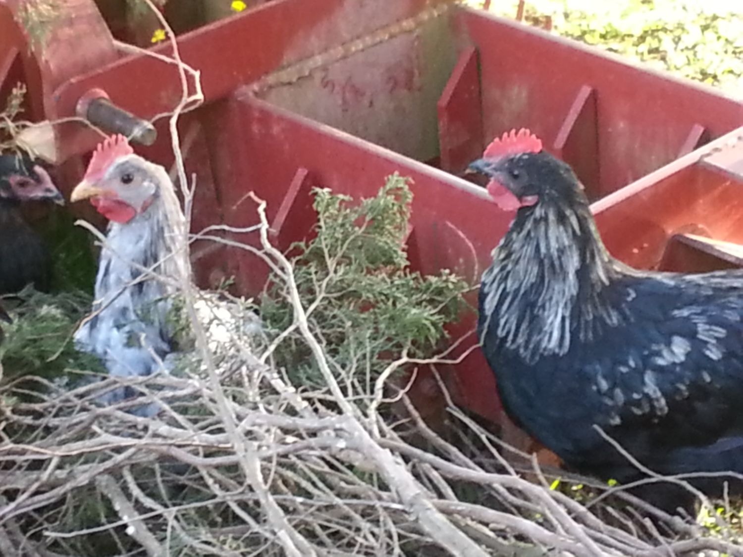My son and I really looked at the olive eggers today. We figured out that the 2 pullets with the Isbar daddy have my blue laced red wyandotte as the mother. They have beautiful laced feathers and around their necks and chest the feathers are like the wyandotte as well - both of them are just a very pretty slate gray color.