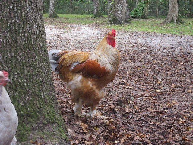Fast-forward ... hormones kicked in. George started nipping at me whenever I went outside. Pretty annoying! I would then pick him up and hold him like a baby for a while, then put him down and he would bwak bwak his displeasure and go his merry way, only to try again the next time. I'm thinking, I have created a monster! He never tried to flog me, though, just a nip here and there.