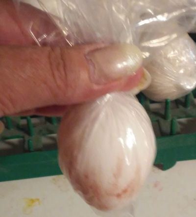So based on that experience, is there a reason we do not seal eggs in plastic baggies or try to add some moisture to packaging? It stands to reason, based on my crazy thought process anyway, that if you keep the egg moist it will evaporate less and be less likely to scramble or detach the air cells making hatch rates go higher.