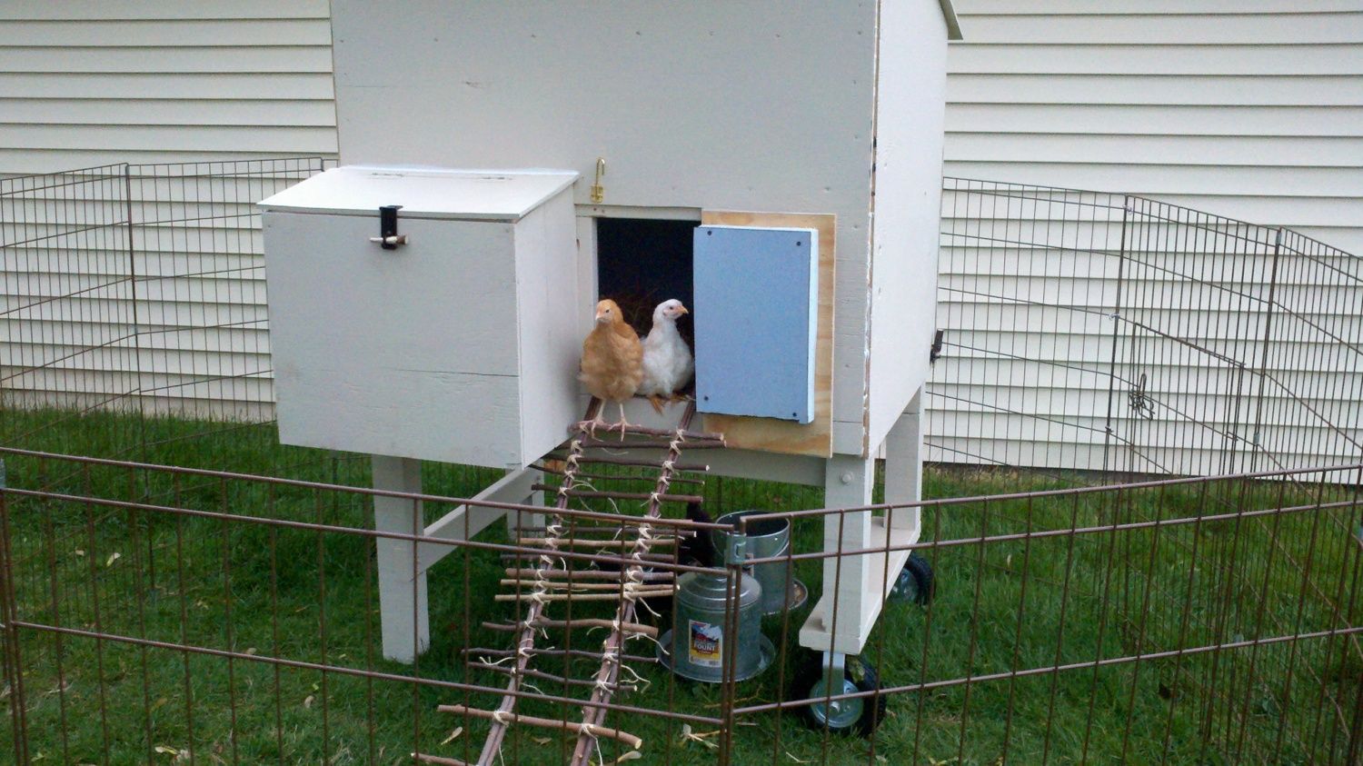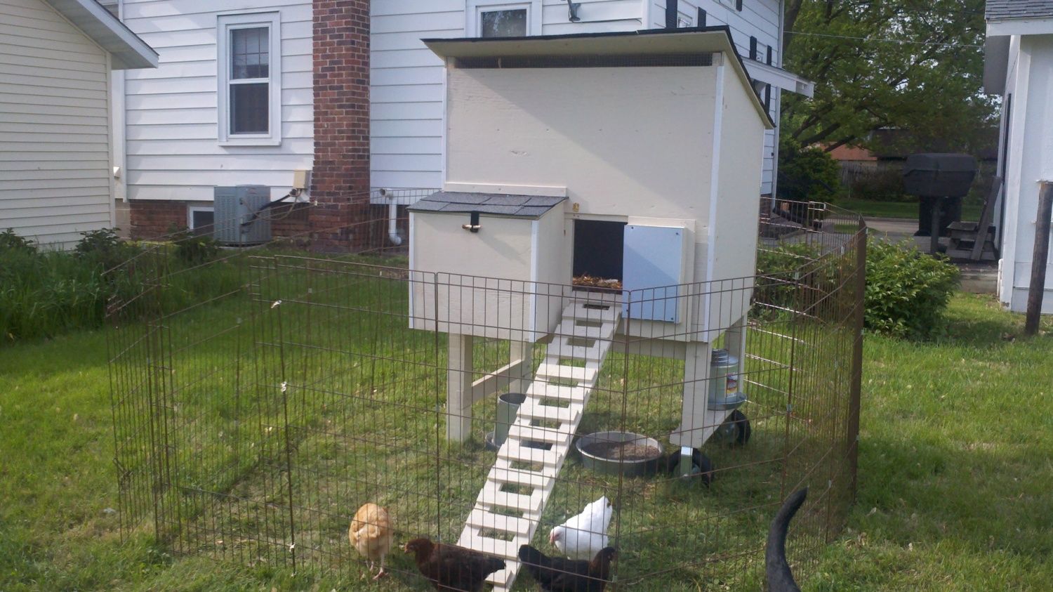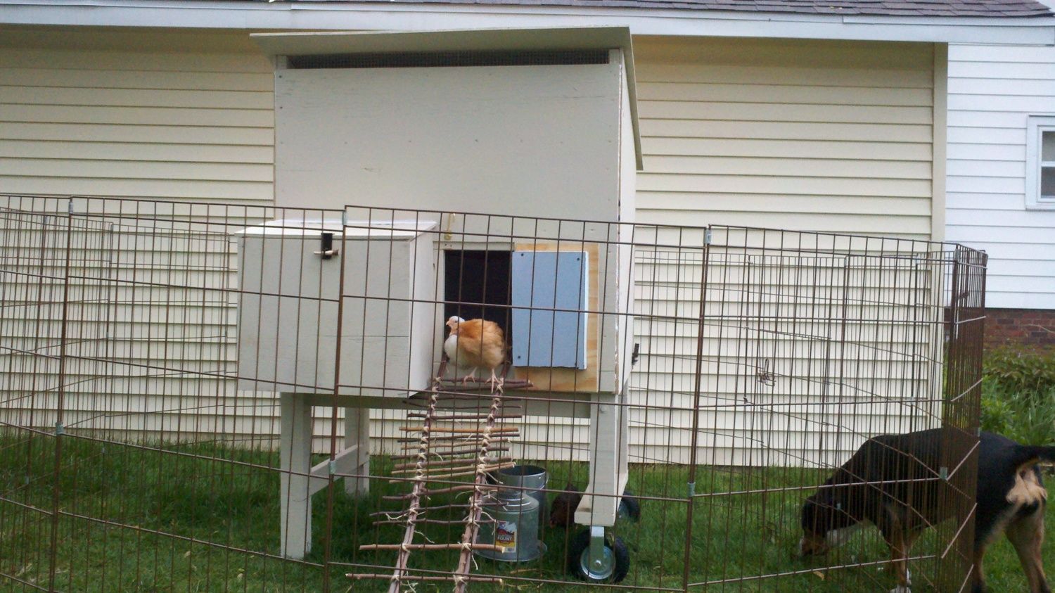The coop is fully insulated with an interior and exterior wall. It is a wheelbarrel design and we will move it around the yard. I have a 4' high portable dog fence to keep the chickies contained around their house.