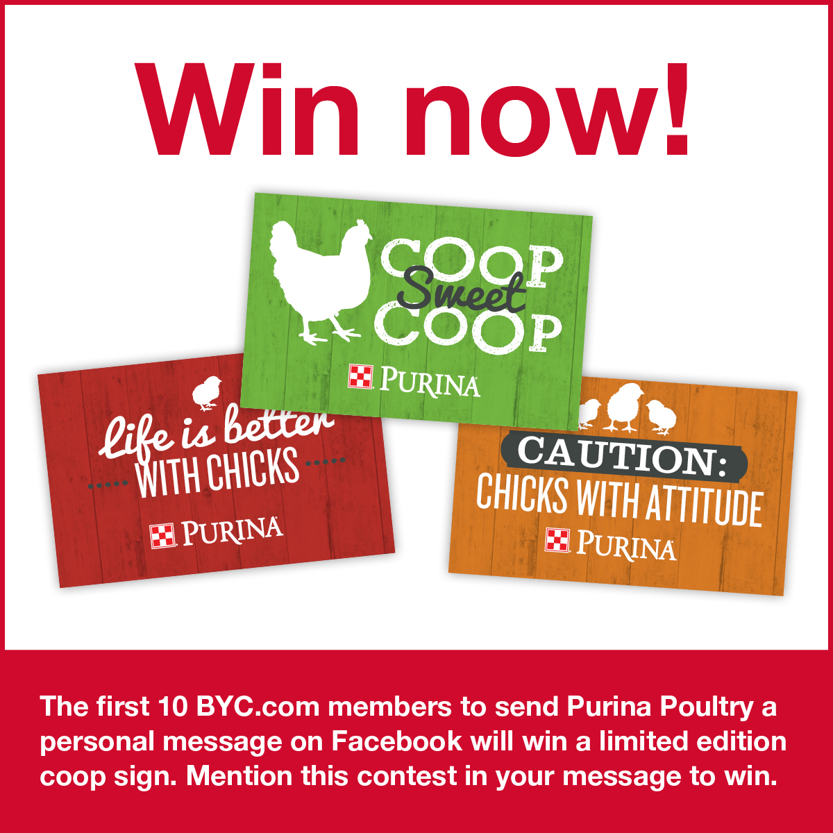 Would you like a fun, limited edition tin sign to hang on your coop? Just message us on our Facebook page for a chance to win! We’ll be sending a sign to the first 10 BYC members who send us a message on Facebook and mention this promotion.