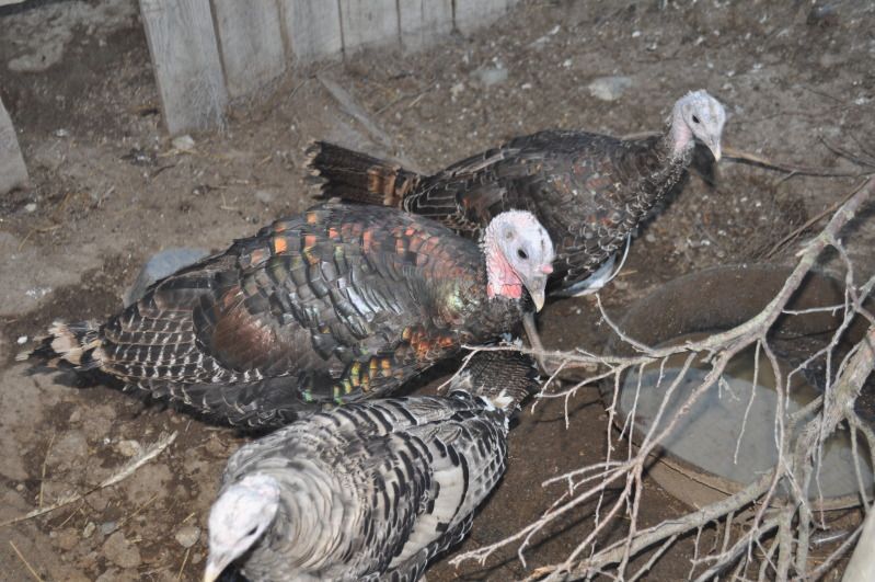 Looks like both are girls to me, got a trio of merriams that are a bit younger then yours and the male is very obvious. One good thing to go by is, if the warts at the base of the neck at the front where the feather start are as big as your thumb, you got yourself a tom. Once they hit this age they should be there quite prominent.