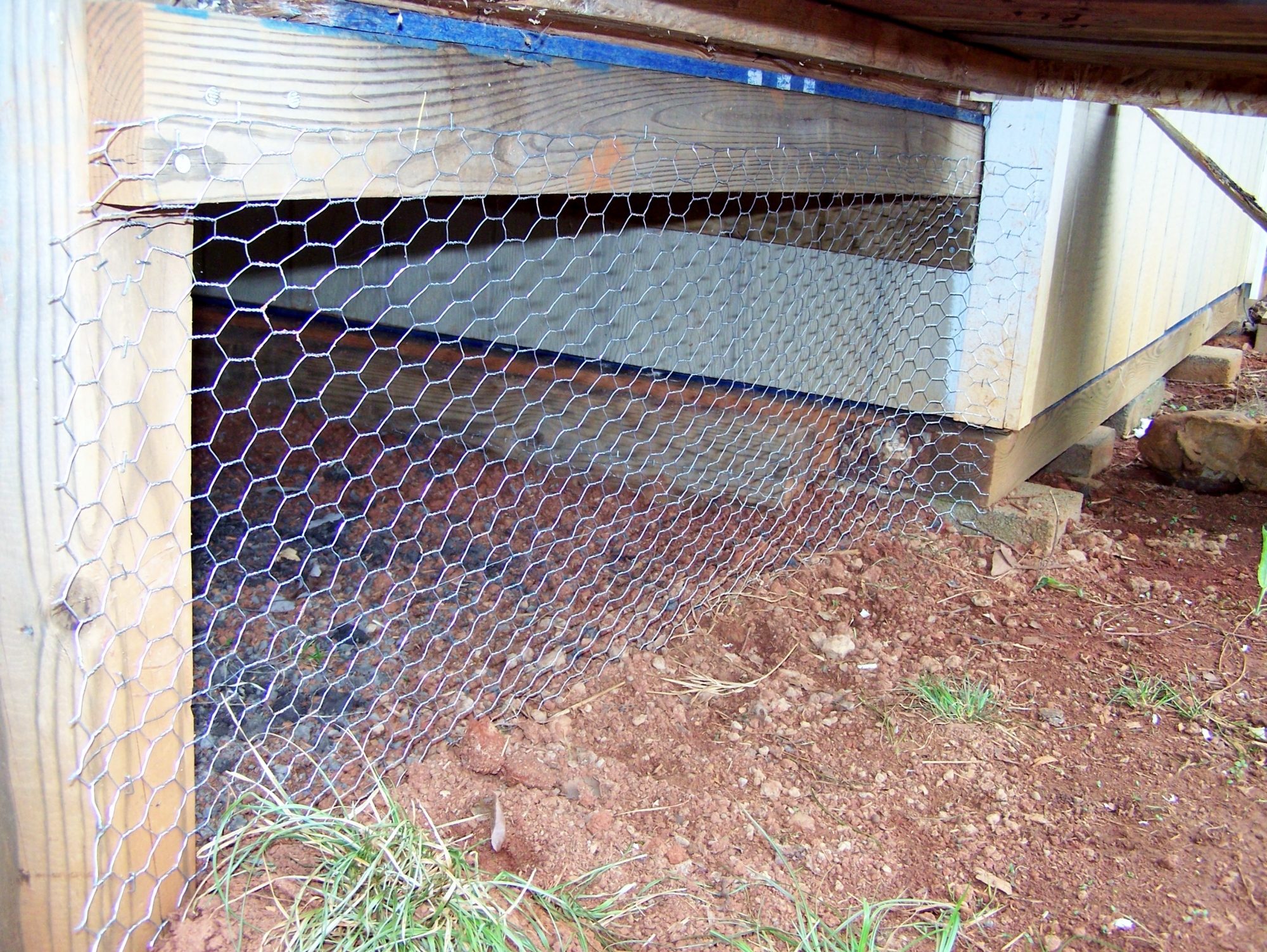 Wow, I thought it looked pretty secure and THEN you wrapped the whole lot in chicken wire lol. Can you still see them? I shouldn't think you have to worry about that nightmare; a predator will take one look and go off to find an easier morsel! Great job!