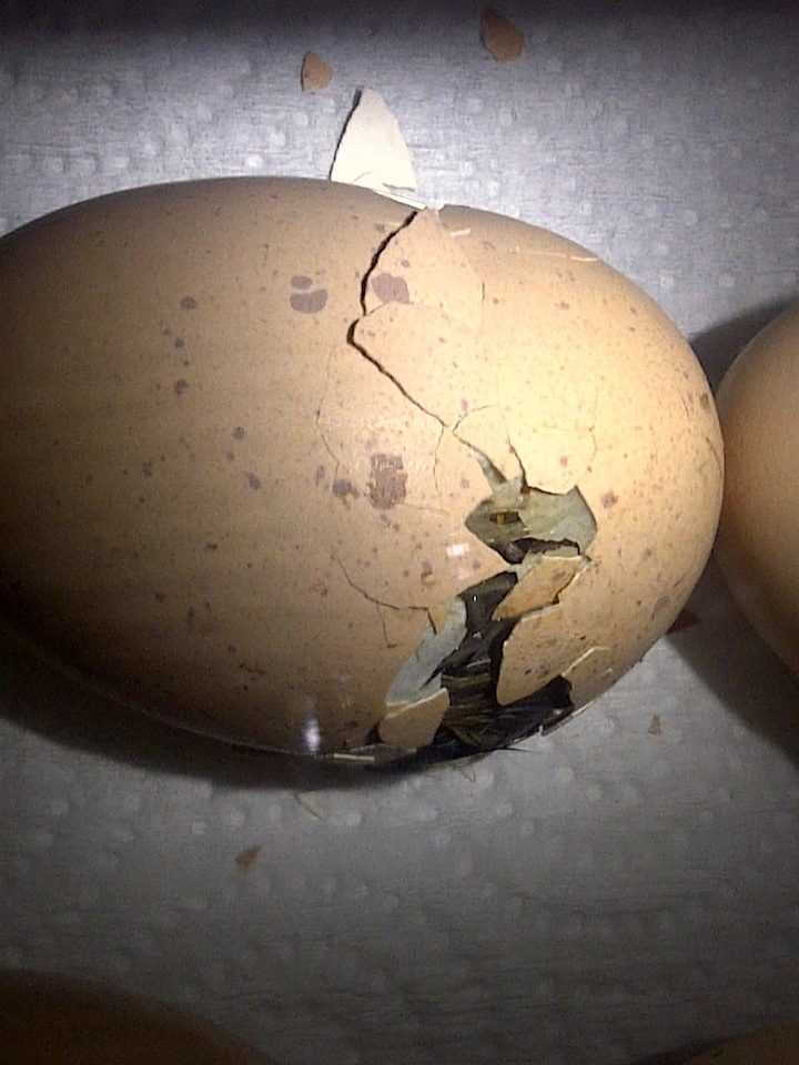 don't cha know, you're supposed to be chirping in the little hole, so they think there's more chickies outside to play with.... LOL I always chirp to the eggs when it gets close, the eggs start moving nd i hear lots of noise... so cool...'Melinda
