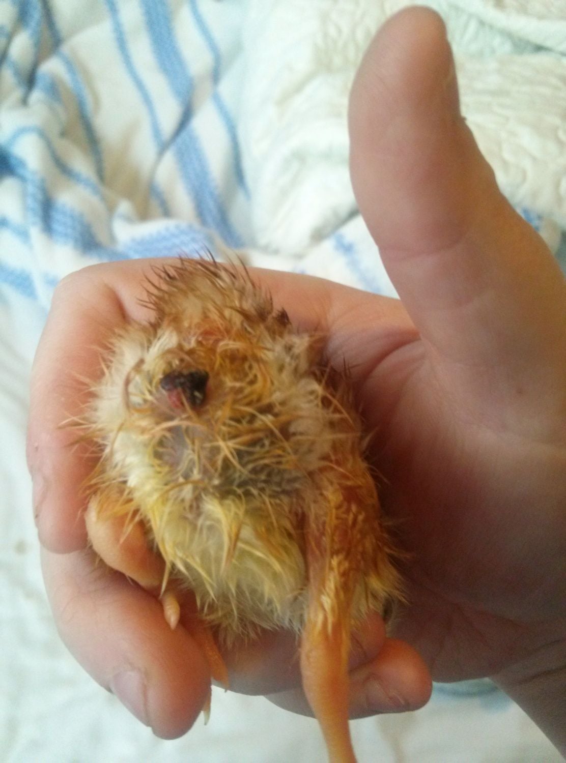 I talked to someone via pm and her suggestion was to cull it to put it out of it's suffering. but the chick doesn't appear to be suffering. It is walking around like the others and falling asleep with the others. No sign of pain... no whimpering . I had somehting like this happen last year and the chick grew with the others. But if his appearance and other stuff changes I will take action, but not sure if it will be culling it. i want to help it live and not die. Even if I did chose to cull it I wouldn't know how. I also couldn't take killing it, it's soo cute and stuff. I know thats the hard part but I want to help it.