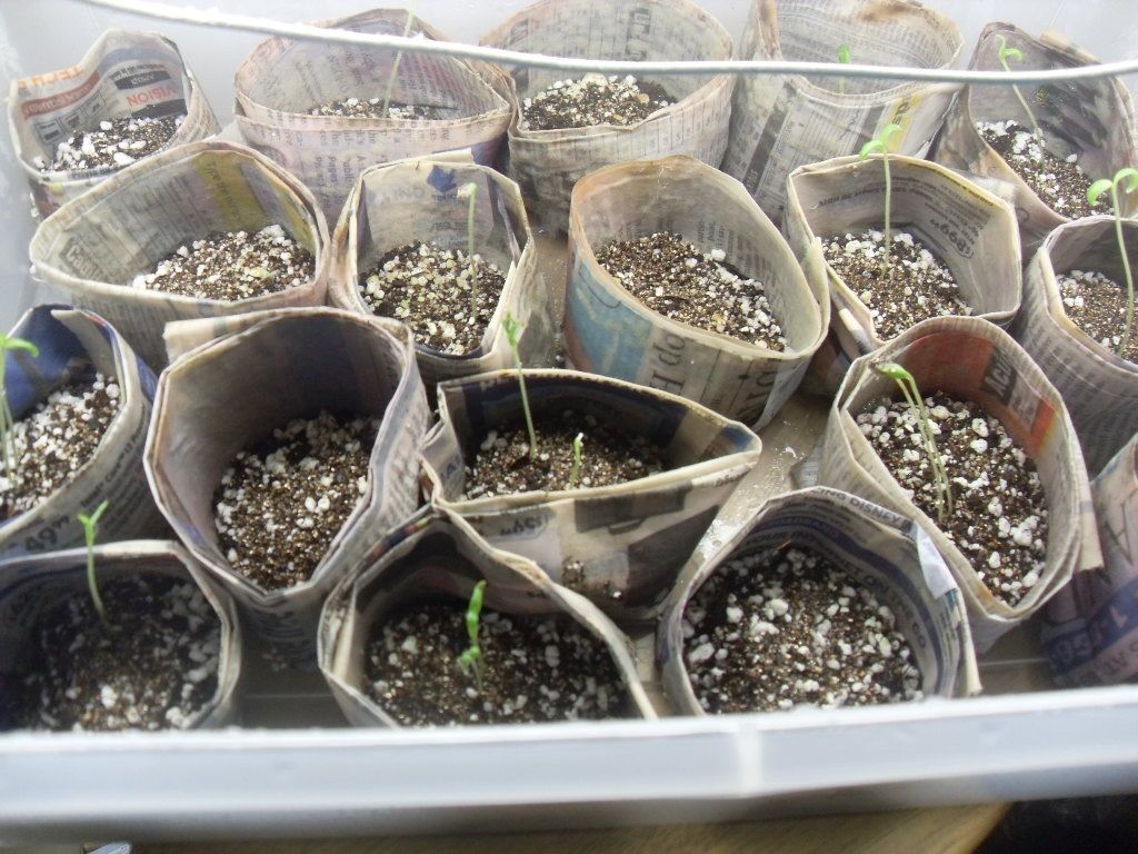 I'm going to try this. Last year I started some seeds late in the growing season in seed cups that I made from newspaper. I watered them from the bottom and this seemed to work real good.They were outside all the time they were in the seed cups. I have a heat lamp that I put a 25 watt light bulb in and set it real close to the plastic bin I have the seed cups in hoping to keep them warm. When I put the lamp on them the temp was 71 degrees, I just looked at them and the temp is 85 at the top. hope this isn't too hot. We'll see what happens.
