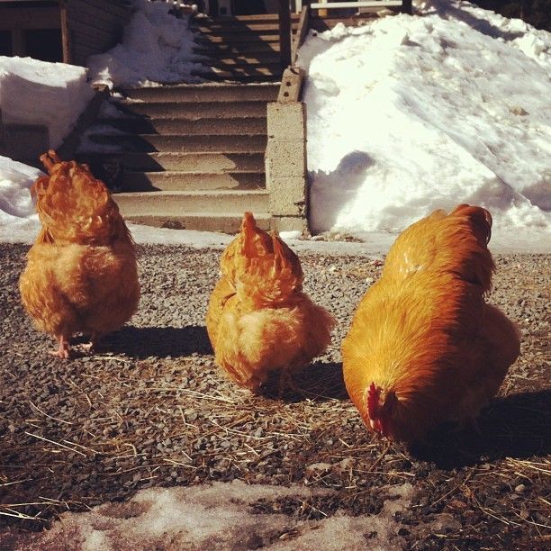 Mine are finally out and about on the snowfree areas of our yard. One would think chickens raised in Norway wouldnt mind a little snow, but my buff orpingtons refuse to put their royal feel on that cold white stuff. So their are of range has slowly gotten bigger as the sun has meltet away the snow, and today it was larger than ever! Safely to say we're all longing for a warmer season after a long cold winter...