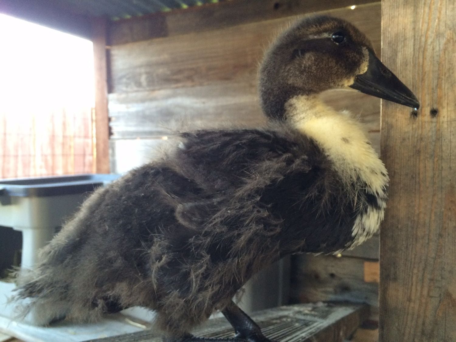 My baby duckling Katie is about 1 month old. She seems to be quite happy and thriving. Katie was however hatched by a chicken and raised with her 2 chick 'siblings' . My problem is this, my duck thinks she is a chicken. It has not been a problem until now. The mother hen and the chicks are roosting now. Katie just lays below them on the ground and just cries. I have 4 adult ducks and hoped they would take the Katie in...not so. They could care less about her and Katie could care less about them. She just wants mom. Do ducks wean there babies later than chickens? Will she get over her separation? Any suggestions will help. Thank you.