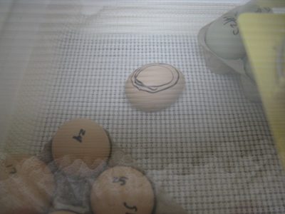 Marker shows where the air sac is - it has pipped on the exact opposite side but I can see the beak and hear peeping. I guess it decided to skip the air sac altogether and just pip directly to the outside!!