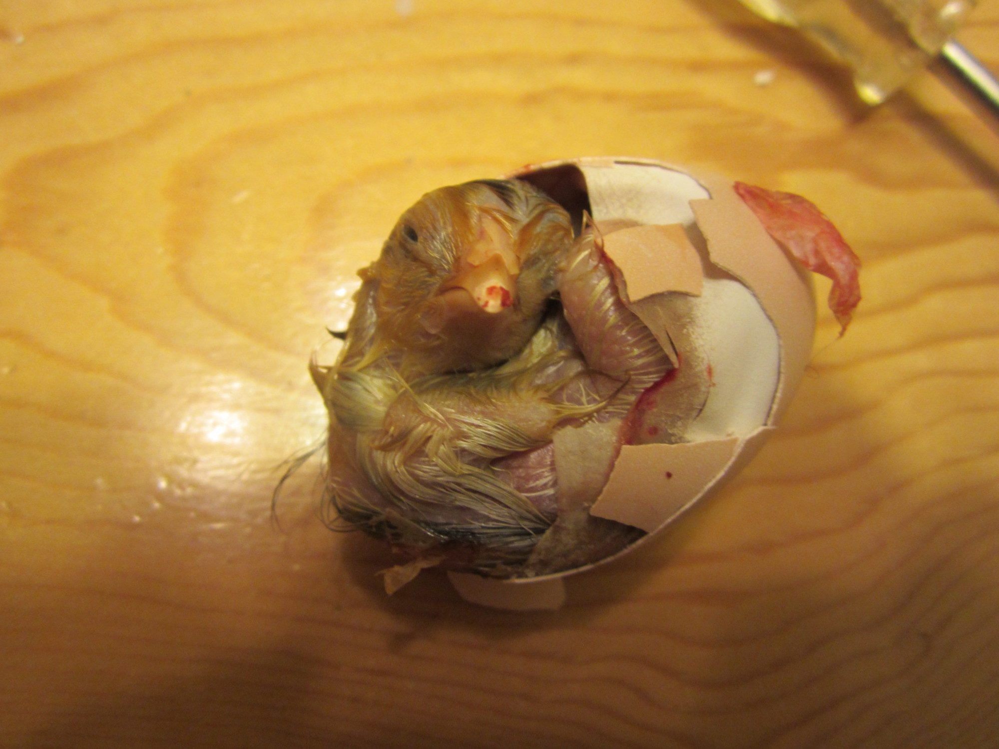 (egg topsy not gory)there was no reason it should not have- it was moist not too moist, beak had made it through membrane, it had absorbed, it just never pipped- I know if they didn't pip then it is because they were not health. but none of this roos chicks made it so far.