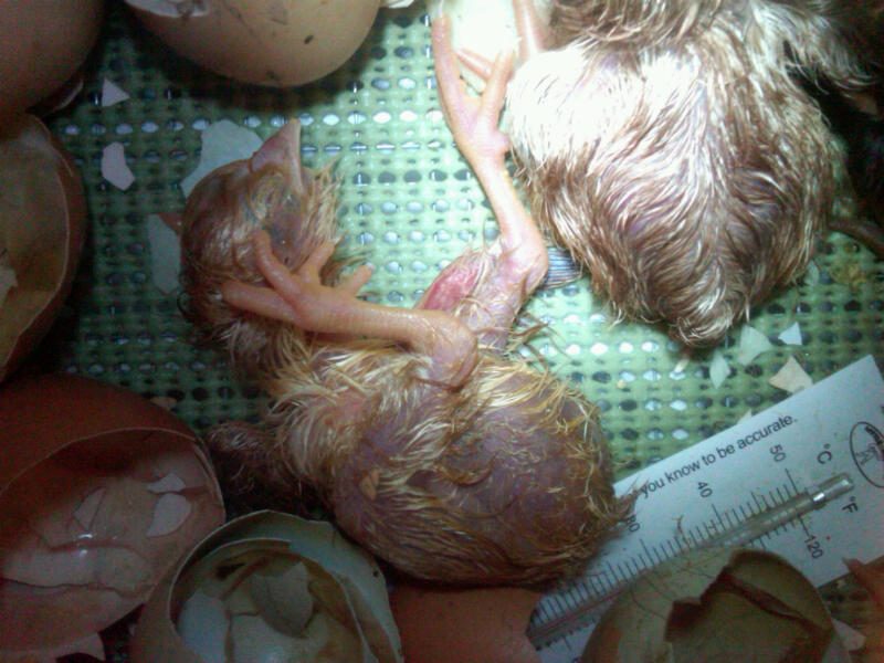 Update on my hatch: As of now (out of 23 ) I have 18 hatched out, 3 pipped, and 2 seemingly duds at the moment...One of the pipped ones has zipped partially but has been sitting in there since early this morning (Come out already! lol) I am a little bit worried about the 2 that haven't pipped yet, although I know that they could take longer) There is a HORRIBLE smell that started to come out of the bator and I'm worried that one of them has died....