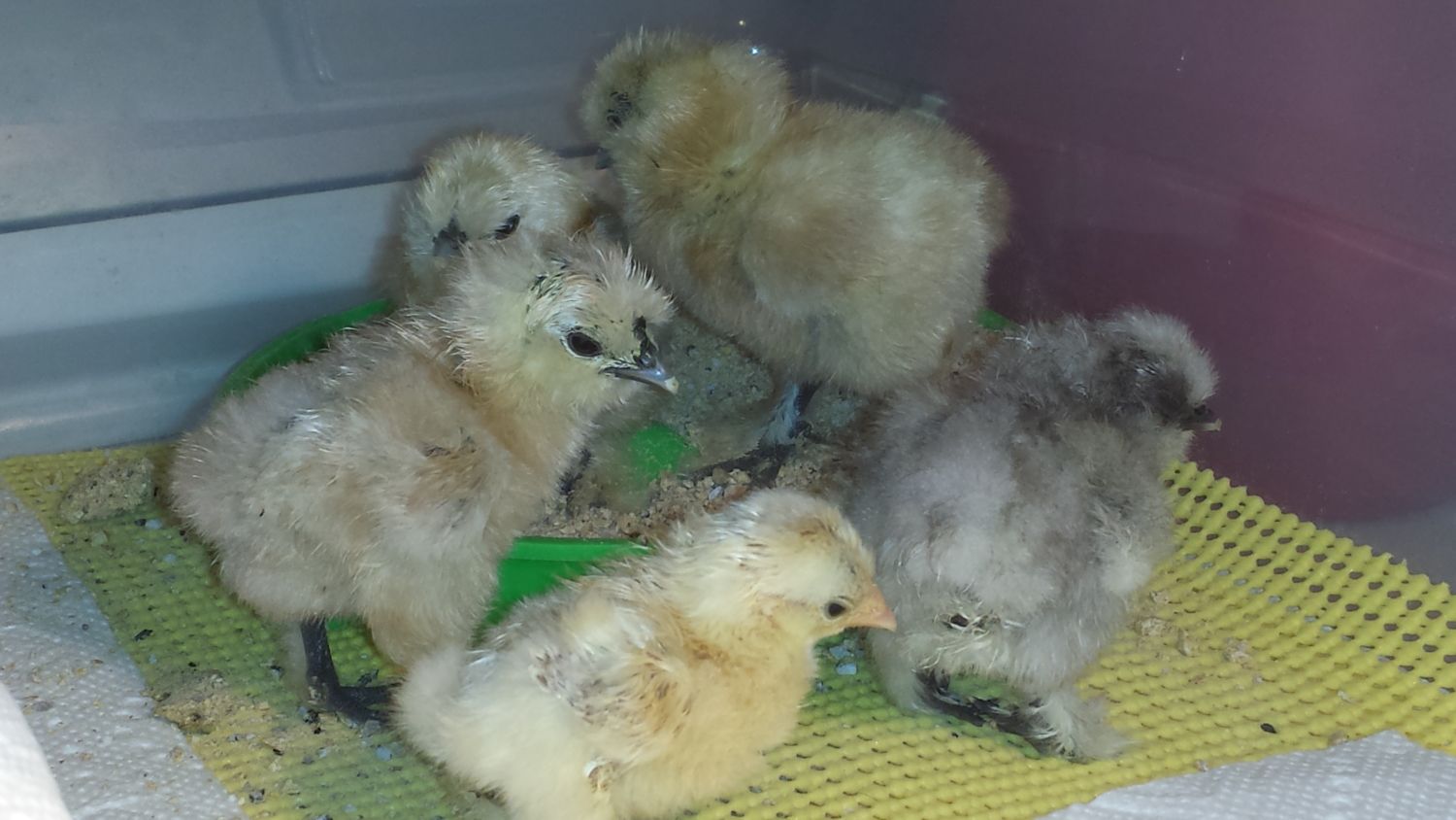 1 beautiful chick, hope he/she gets a buddy. My lone chick was going a little psycho alone for a day just chirping away, now with others is perfectly content. Haven't been able to get pics on here will try later one has a Mohawk